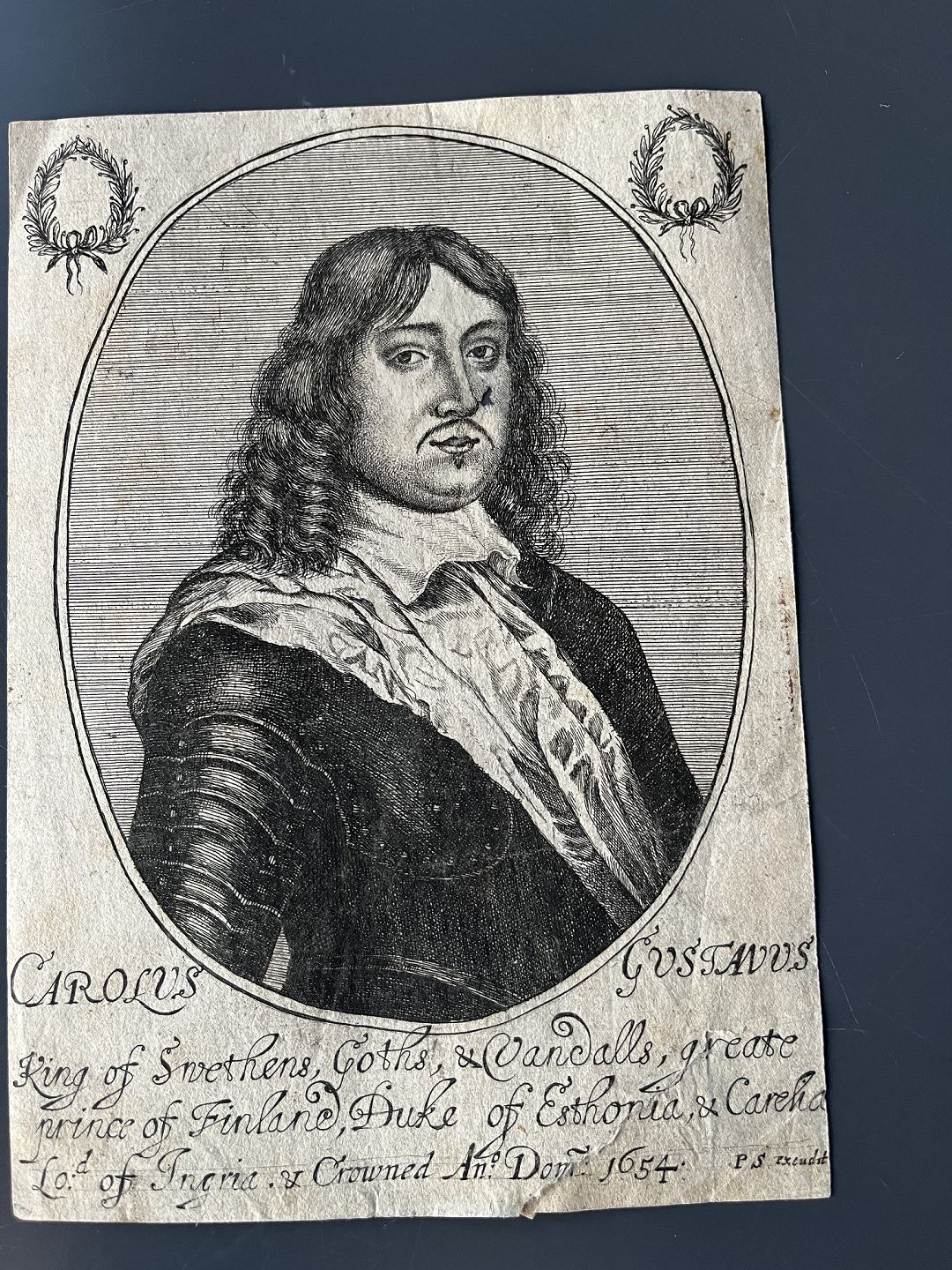 Kobberstik af Richard Gaywood og Peter Stent - Portræt af HM Kong Carl X Gustav af Sverige.