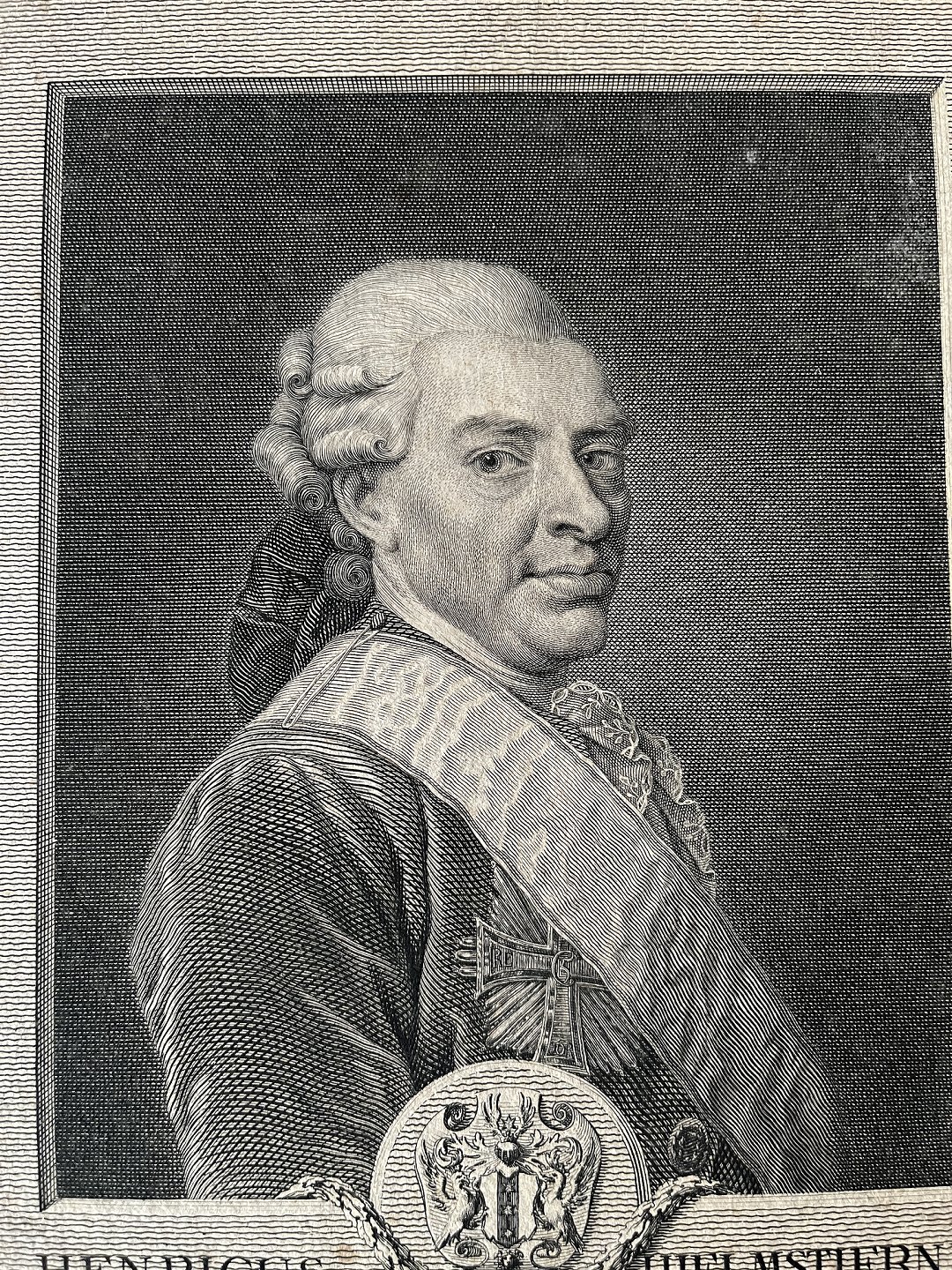Kobberstik af J.F. Clemens - Portræt af Gehejmeråd Henrik de Hielmstjerne.