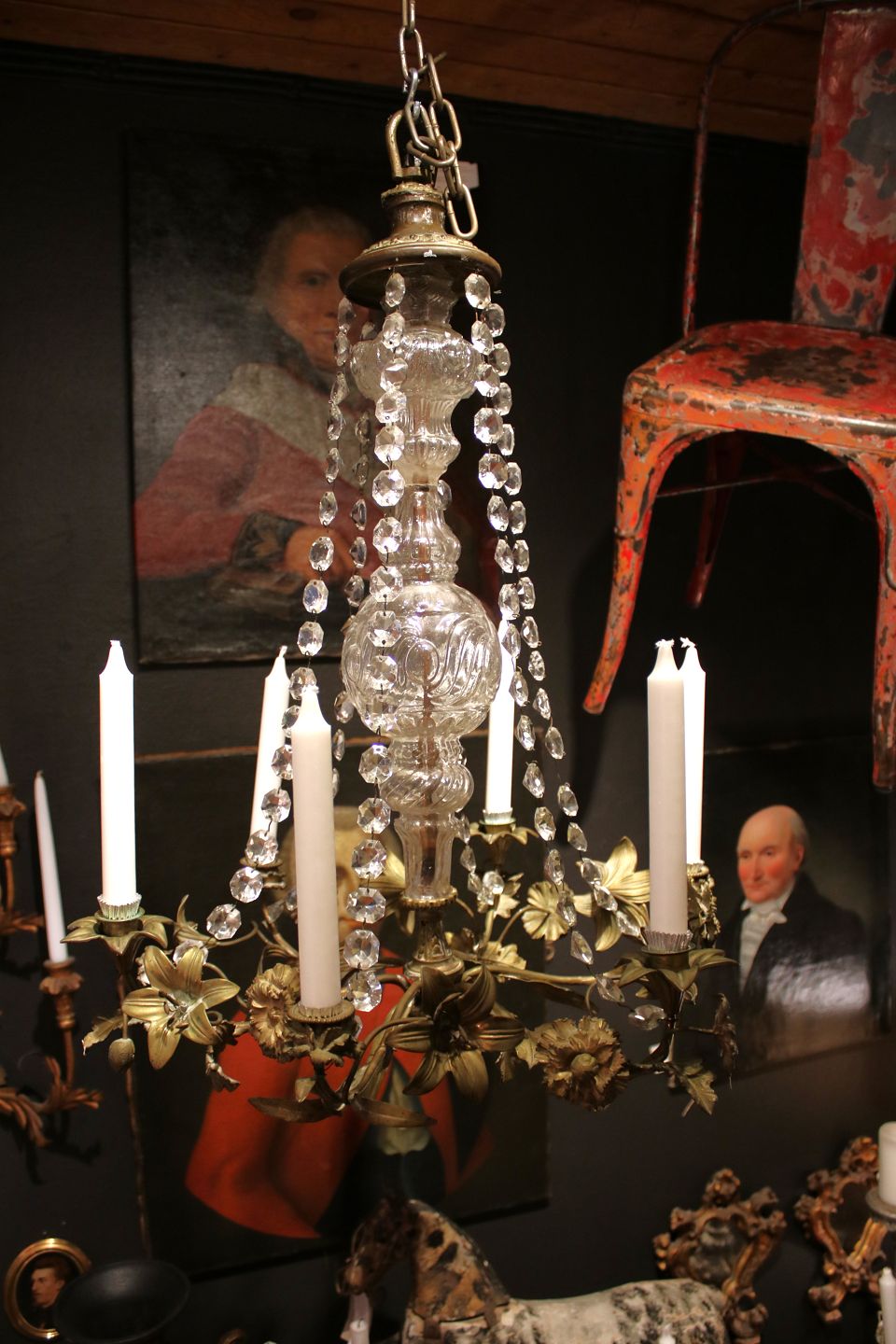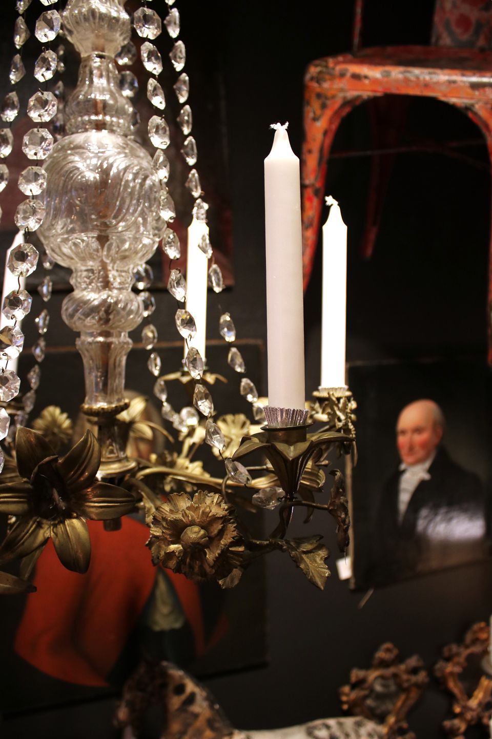 Vi tilbyder et bredt udvalg af gamle møbler med karakter , prismelysekroner og franske kirkestager.
