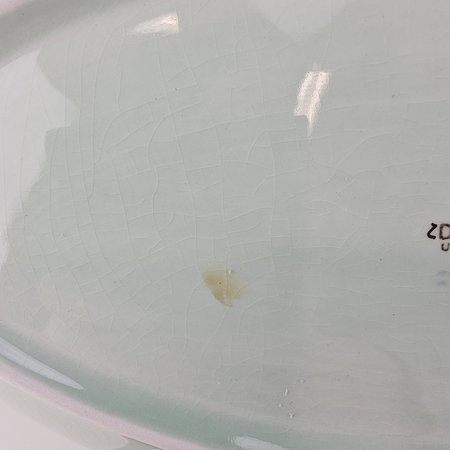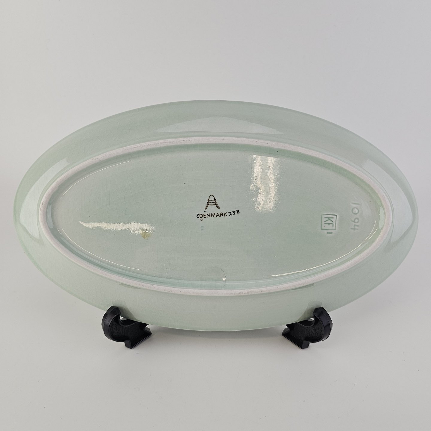 Stel i lysegrøn fajance med natur dekoration og flettet kant