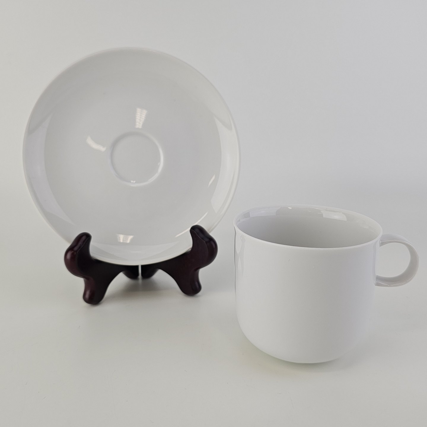 Kop og underkop i hvidt porcelæn fra stellet Alev Siesbye Hvid/Leda