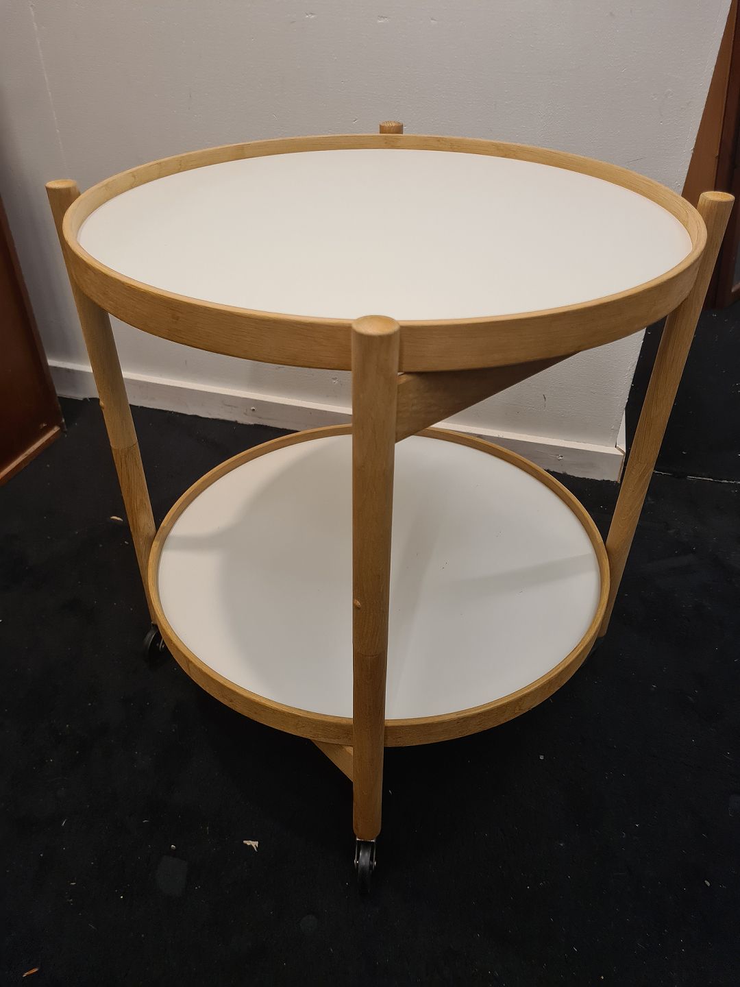 Bakkebord designet af Hans Bølling her i elm med sort/hvid bakker. Fremstår pænt og velholdt uden nævneværdige brugsspor.