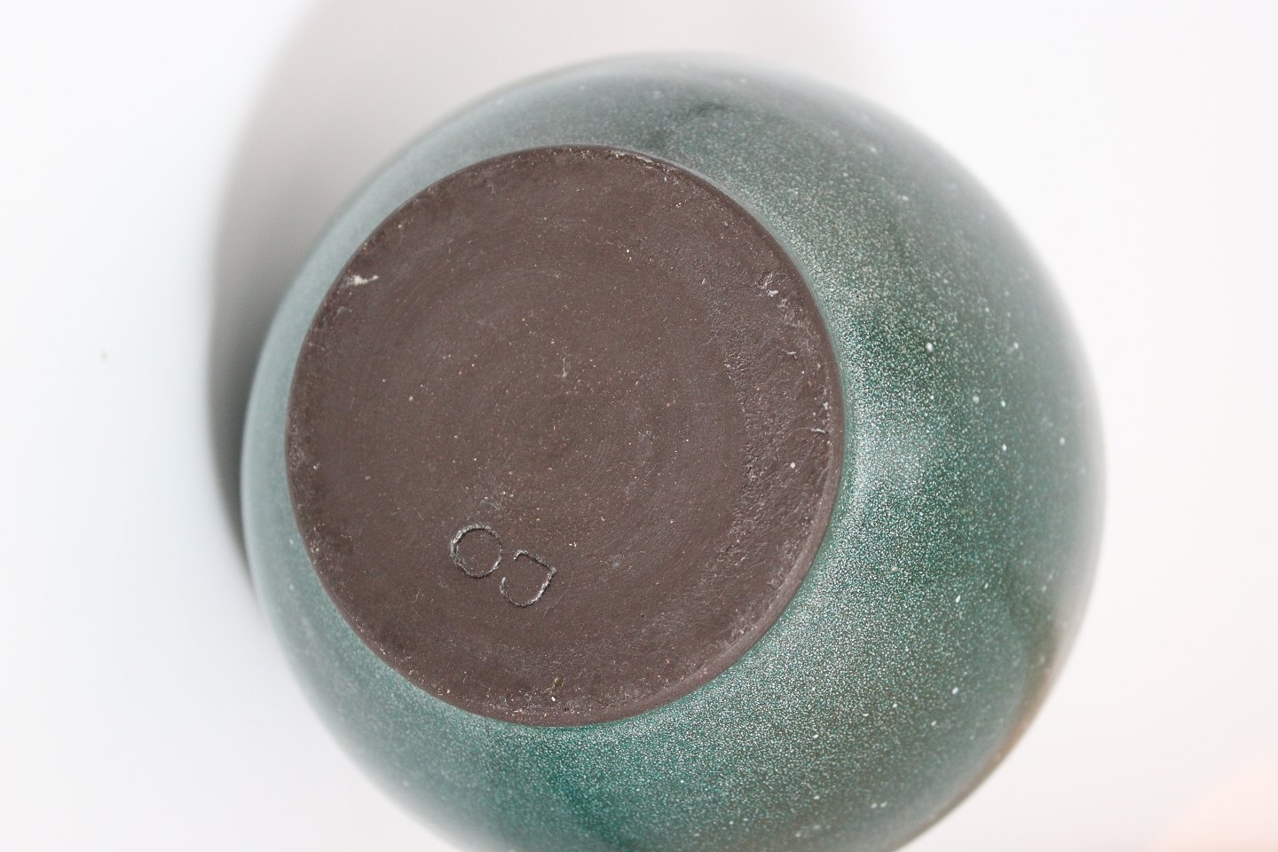 Grøn Vase af Orla Jespersen eget værksted, uddannet hos Kähler. 1948 selvstændigt keramikværksted. Flyttede til Odsherred i 1980'erne.