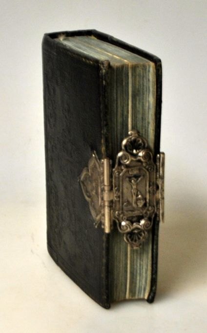 Salme bog i sort læderindbinding og sølv beslag, 1854.