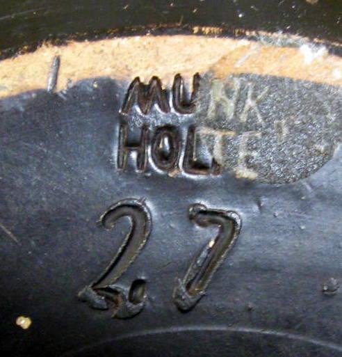 Frugtfad i bemalet ler med ridder i rustning, Munk, Holte. 20. årh. Signeret: Munk, Holte no. 27. Motiv indridset i den våde ler. Senere håndmalet. Dia.: 38 cm.