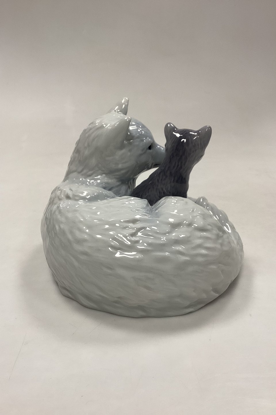 Royal Copenhagen Motherly Love Figur - Polarræv med Unge No. 443