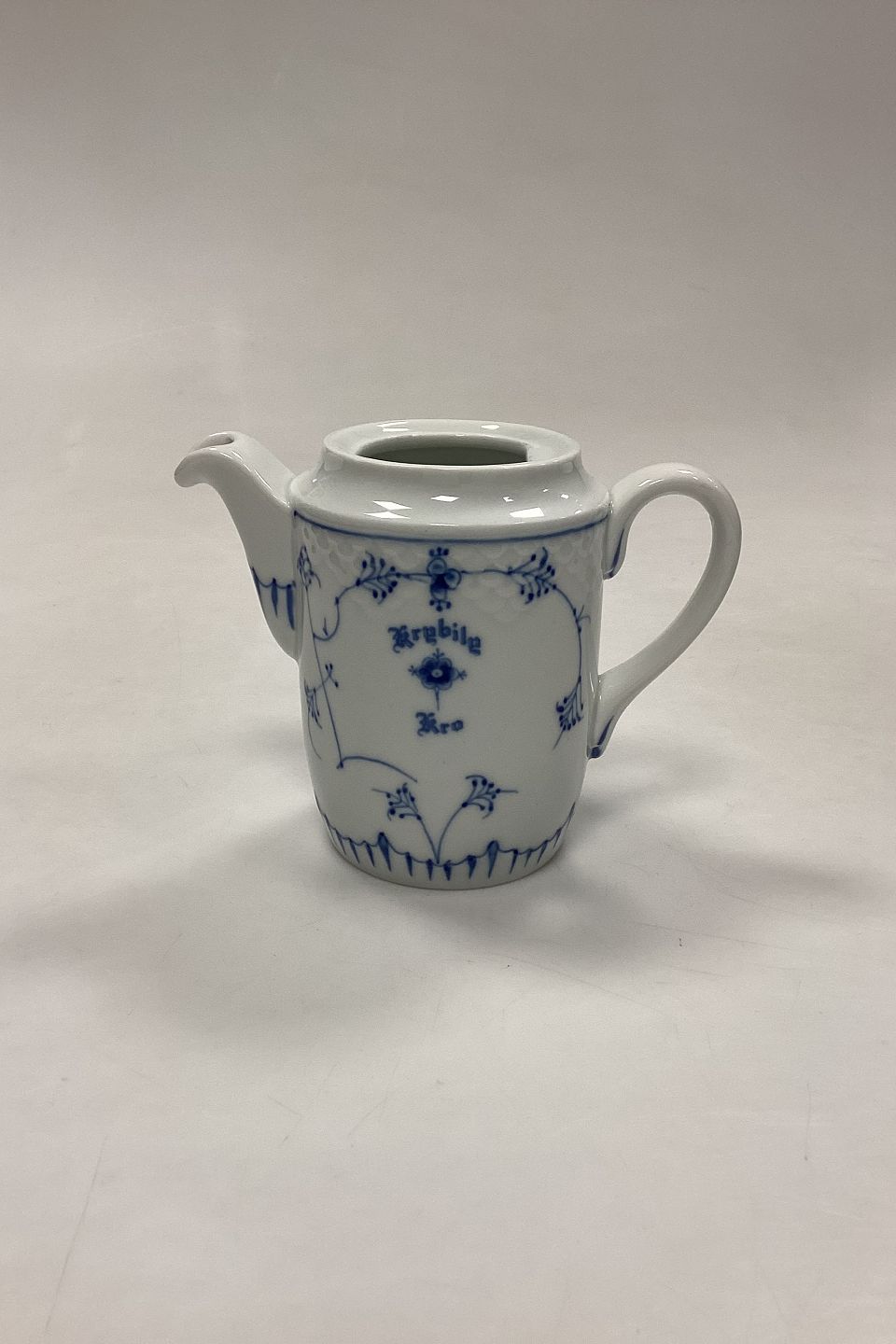 Bing og Grøndahl Blåmalet Musselmalet Hotel med Logo Kaffekande No. 820. Logo fra Krybily (Kryb i Ly) Kro.