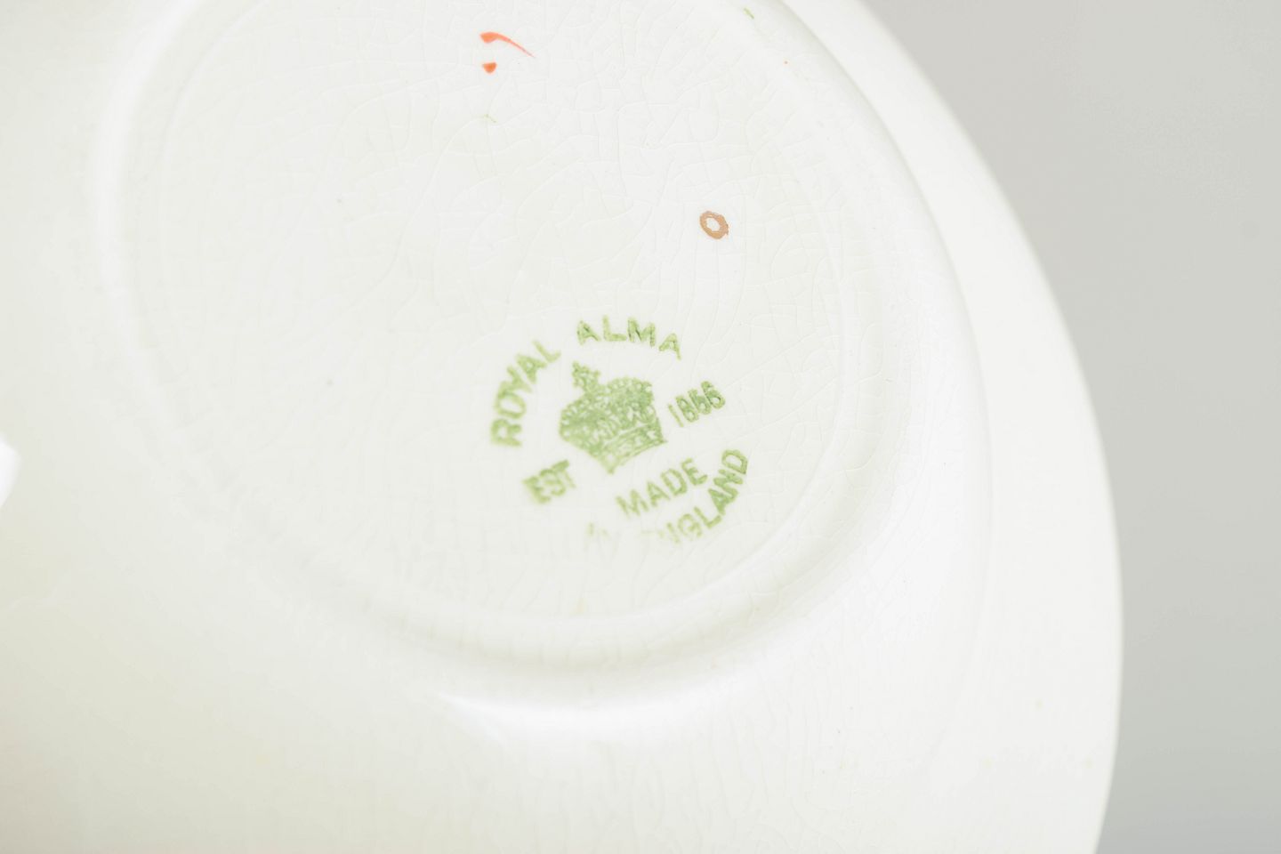 Engelsk fajance fra mellemkrigstiden blev ofte produceret som dekorativt og prisvenligt bordtøj, hvor trykte motiver og ornamenterede borter gav et elegant udtryk. I 1930’erne var romantiske figurscener og gyldne detaljer populære elementer, der skulle tilføre hverdagsservicer et mere festligt præg.