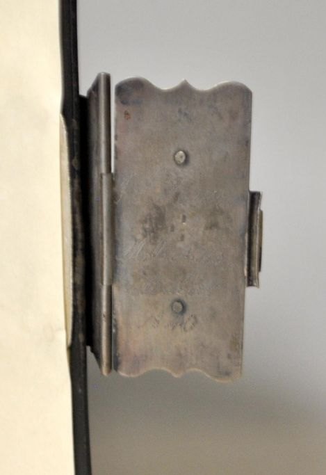 Sølvbeslaget med indgravering: J. F. Balen - M. Michelsdatter 1840.