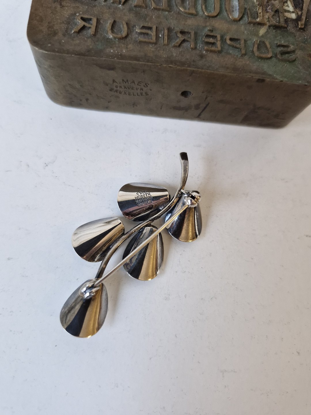 N.E.From vintage broche i sterlingsølv i form af gren med blade |