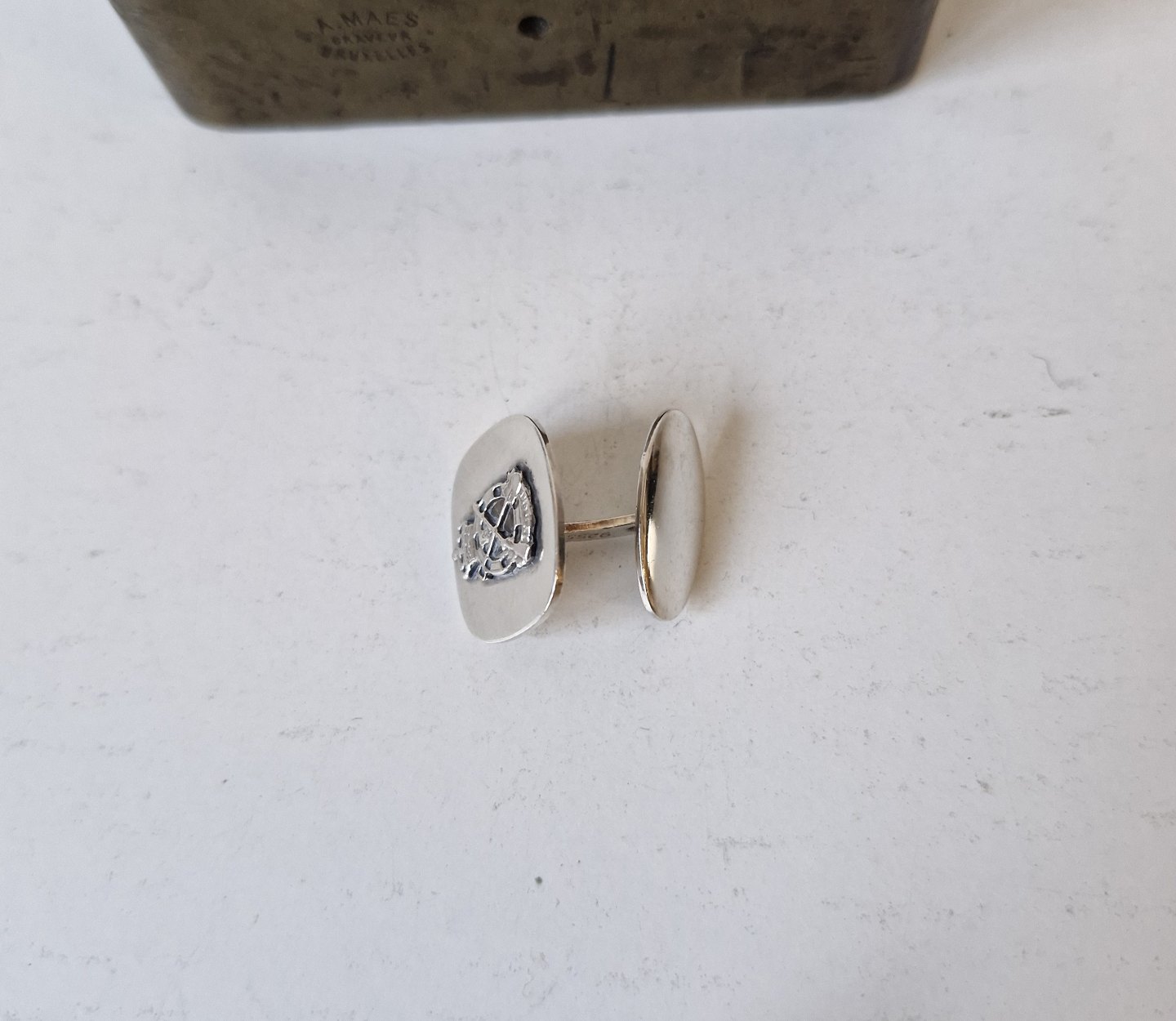 Manchetknapper i sterlingsølv med Ingeniørregimentets logo udført af Hermann Siersbøl