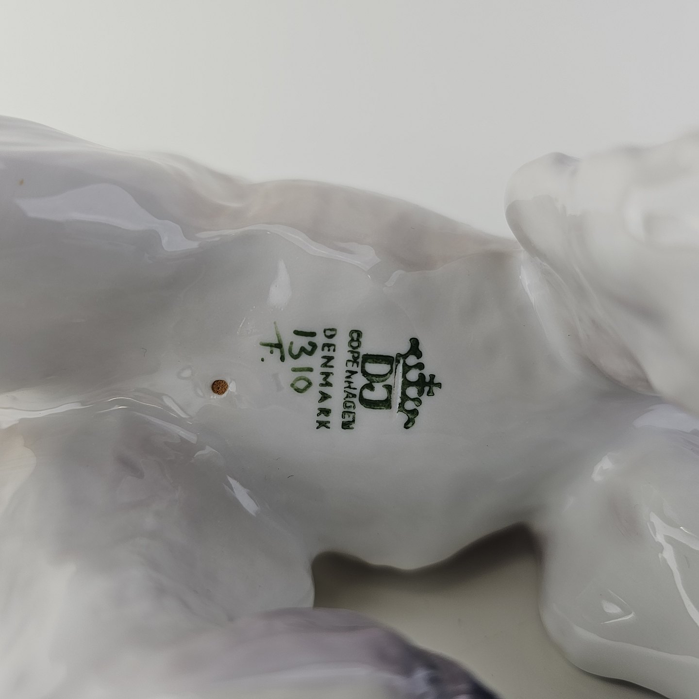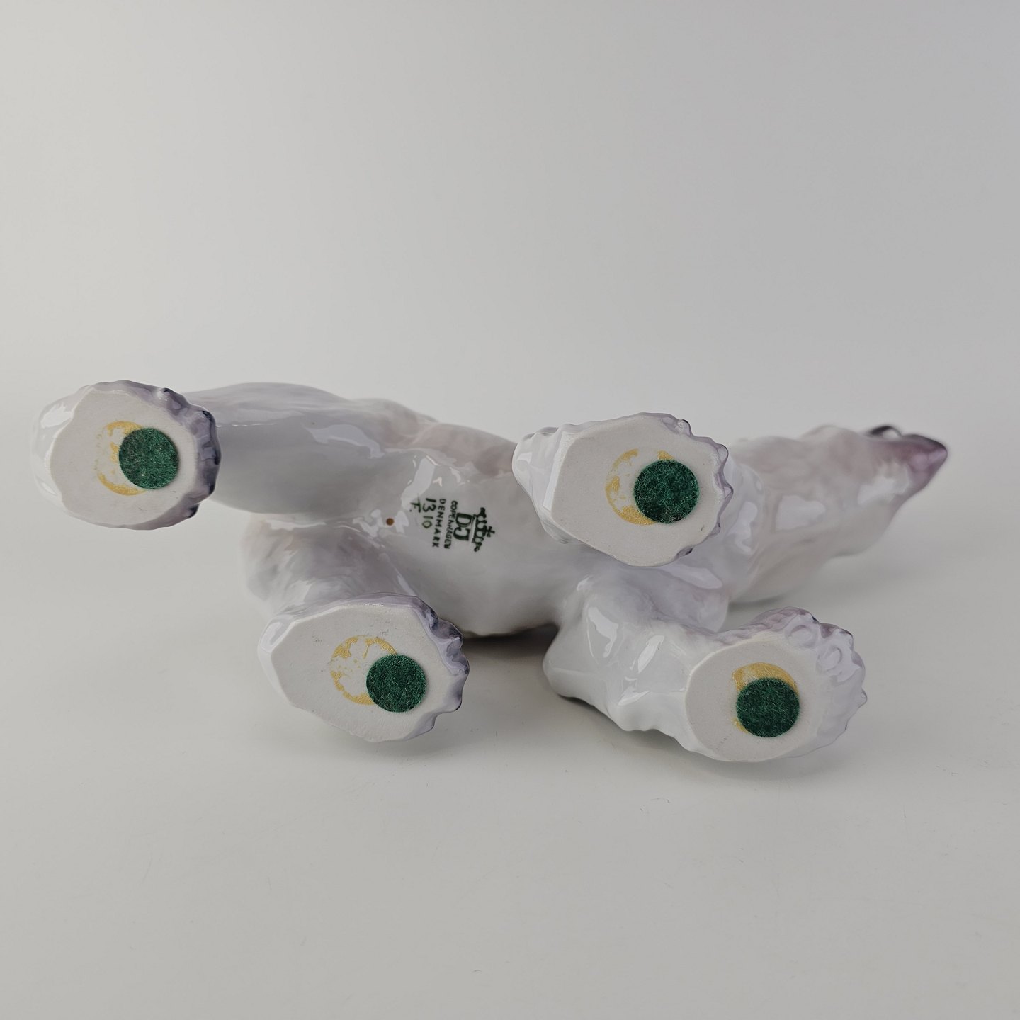 Figur i hvidt porcelæn med motiv af en brølende isbjørn