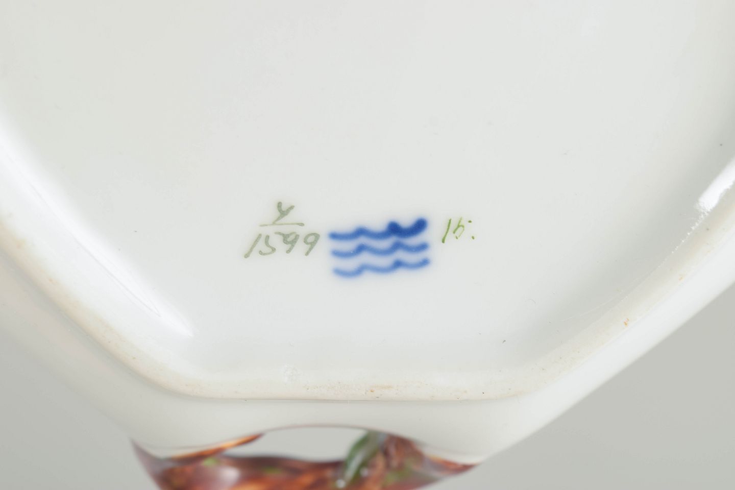 Stand: 1. fabriks; meget lille og ubetydelig skår i blomsterdekorationen, se foto.