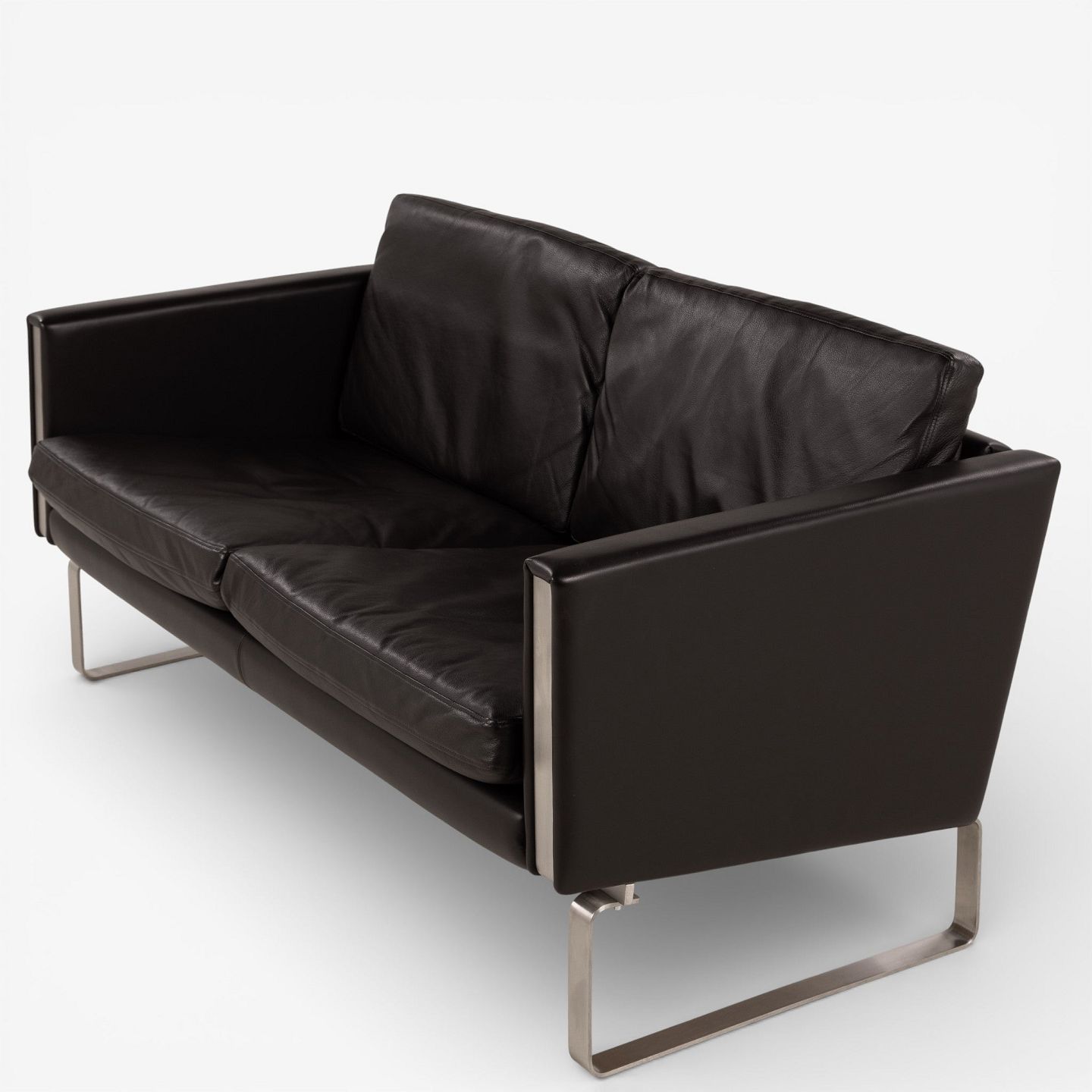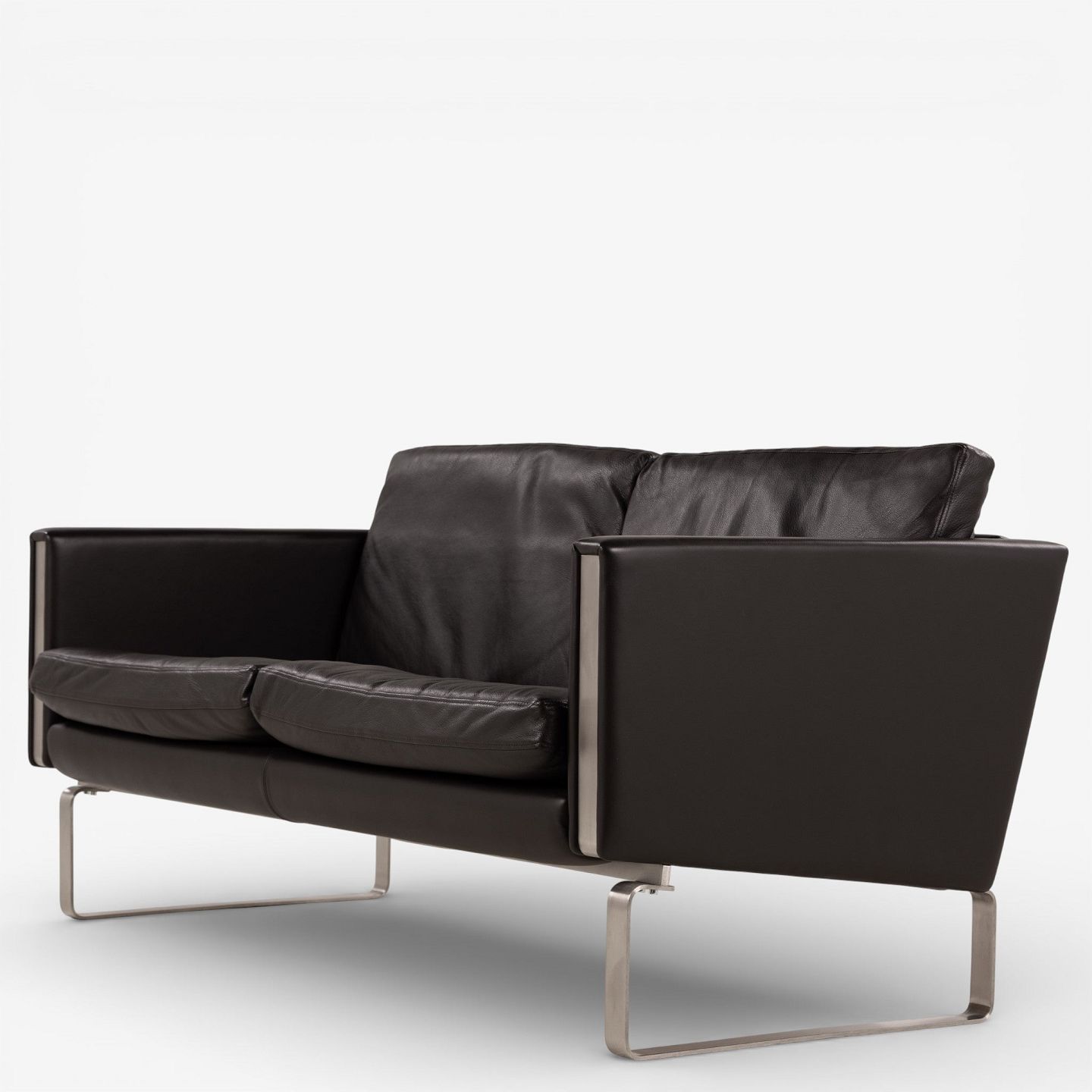 CH 102 - 2 pers. sofa i mørkebrunt, patineret semi-anilinlæder med stel i stål. Mærket fra producent.
