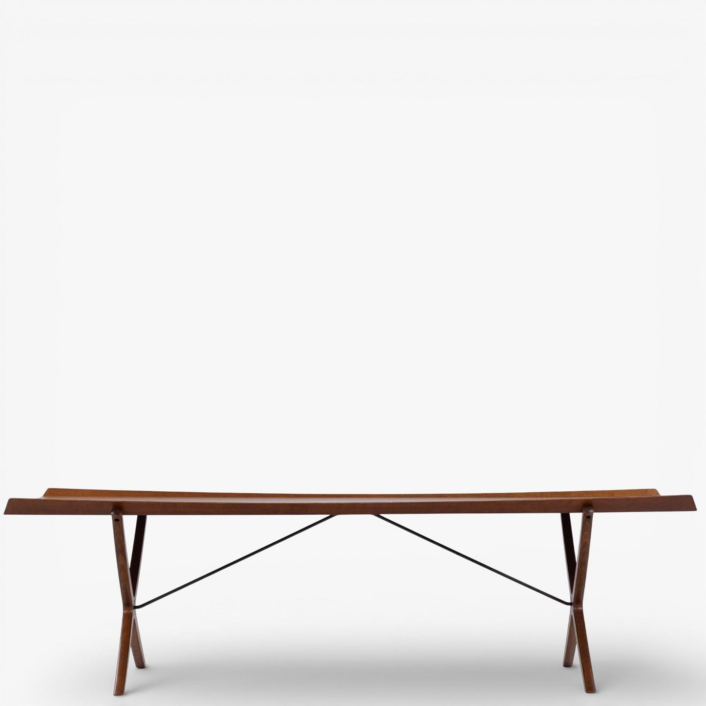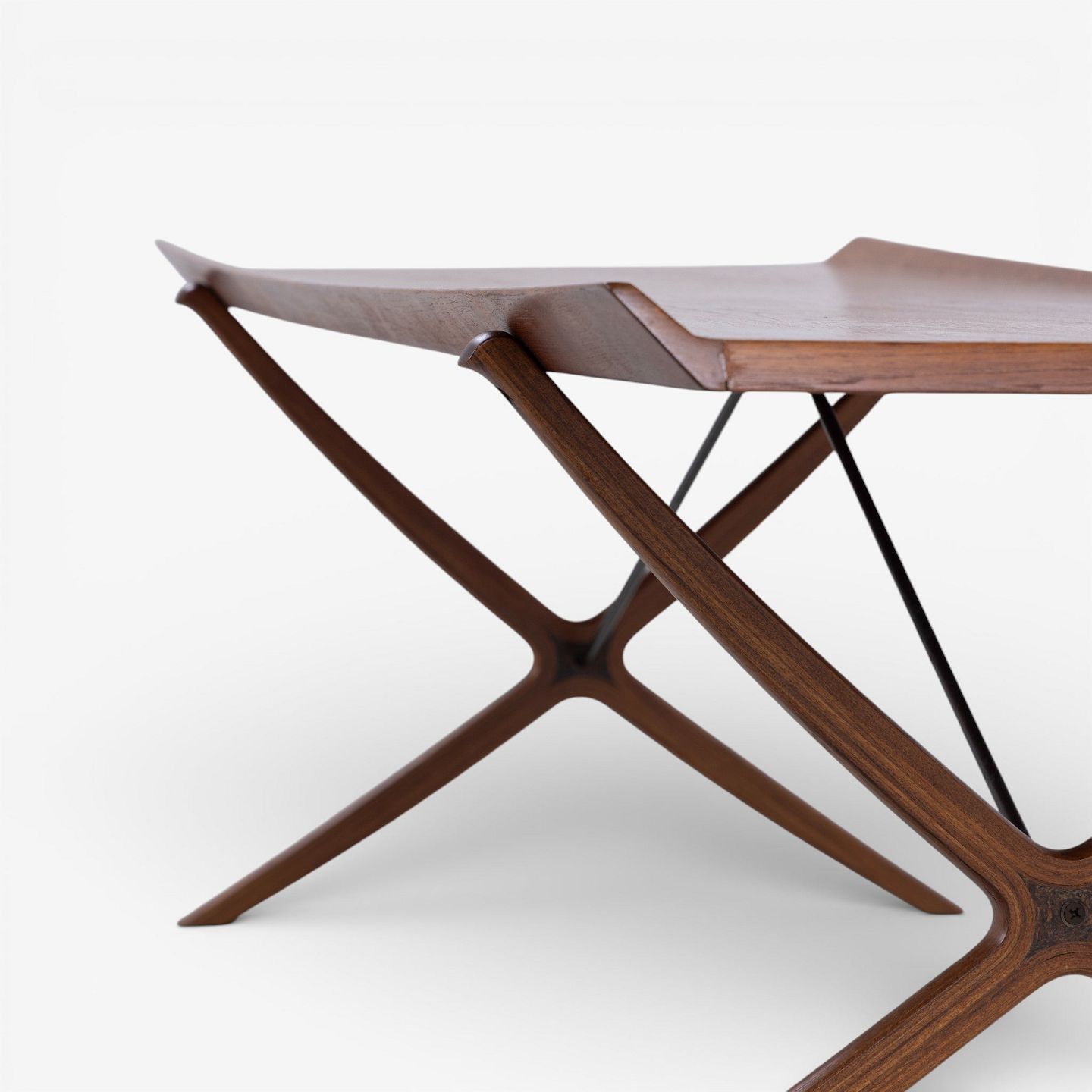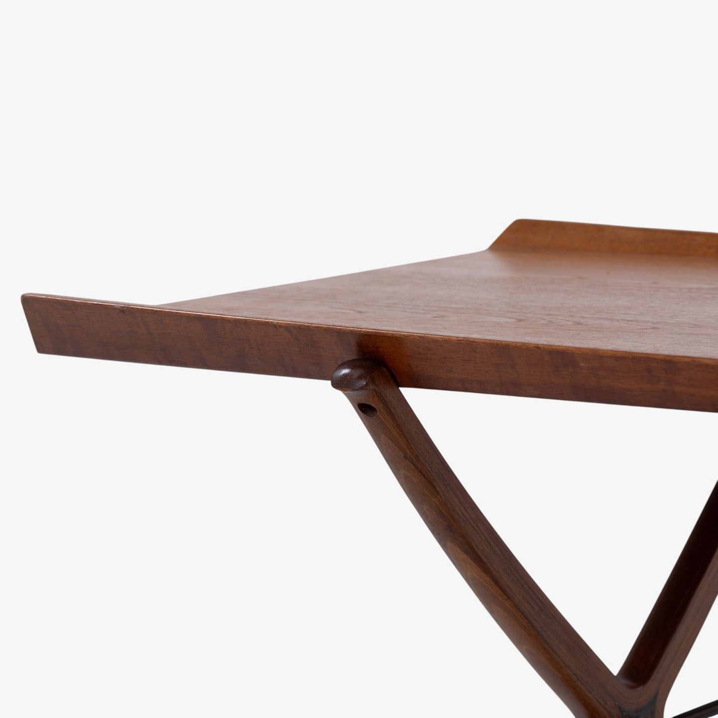 Sjældent 'X'-sofabord med top i patineret teak m. kehlet kant på krydsstel. Stemplet fra producent.