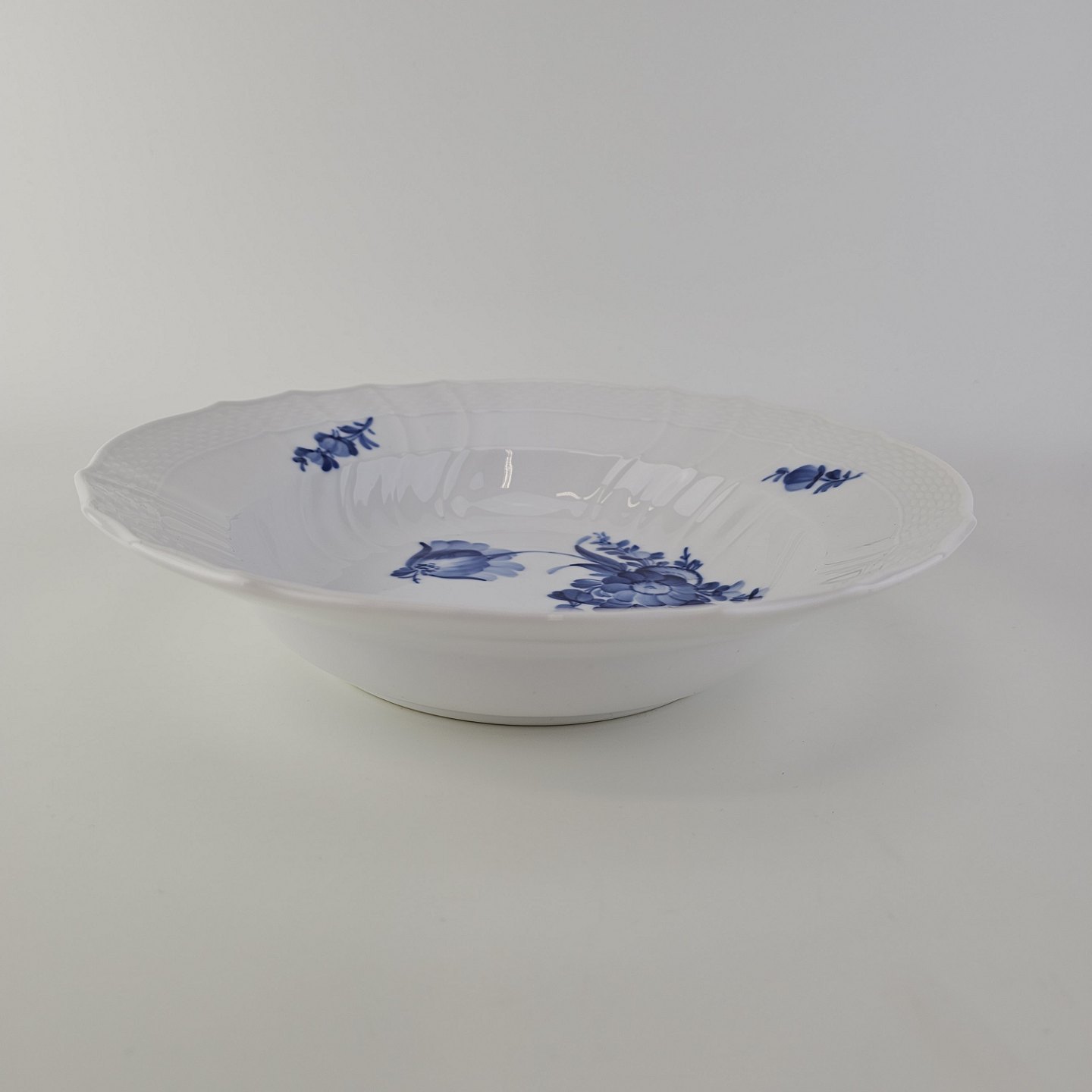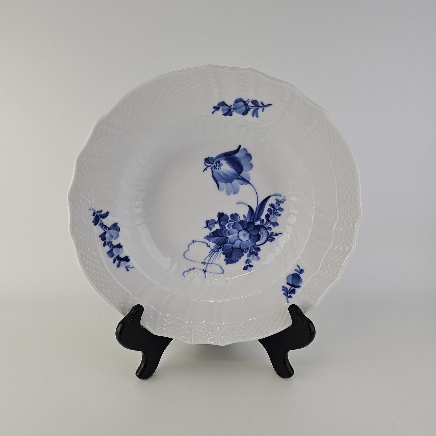 Dyb tallerken i porcelæn fra stellet Blå Blomst svejfet