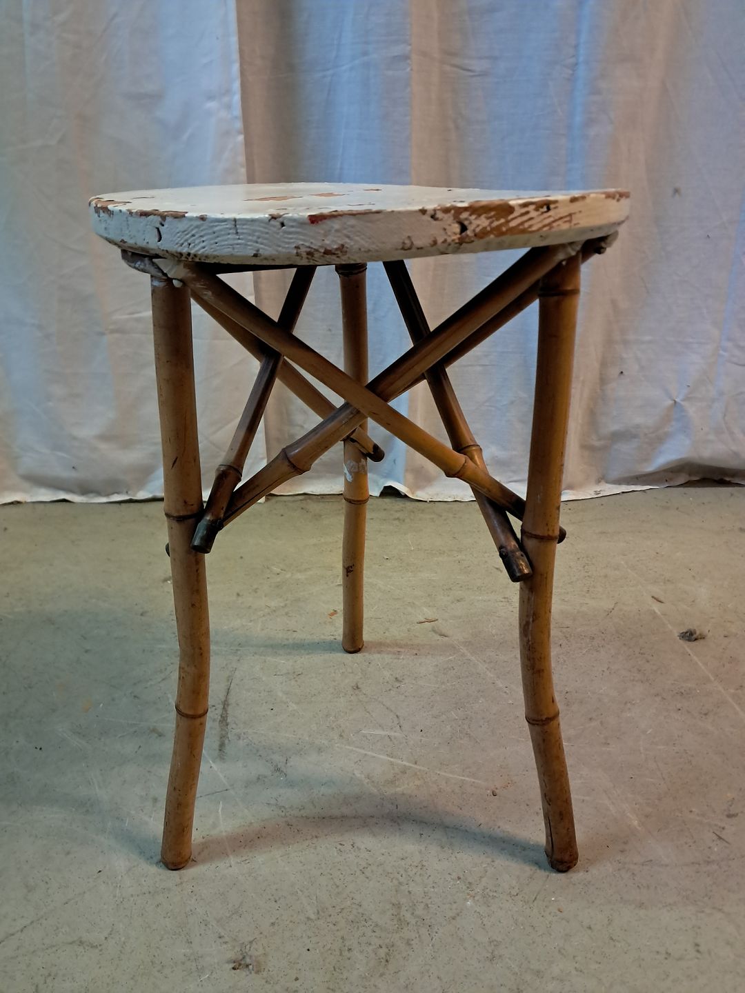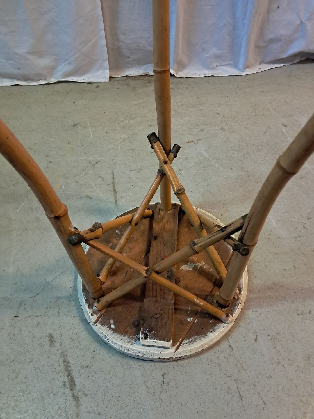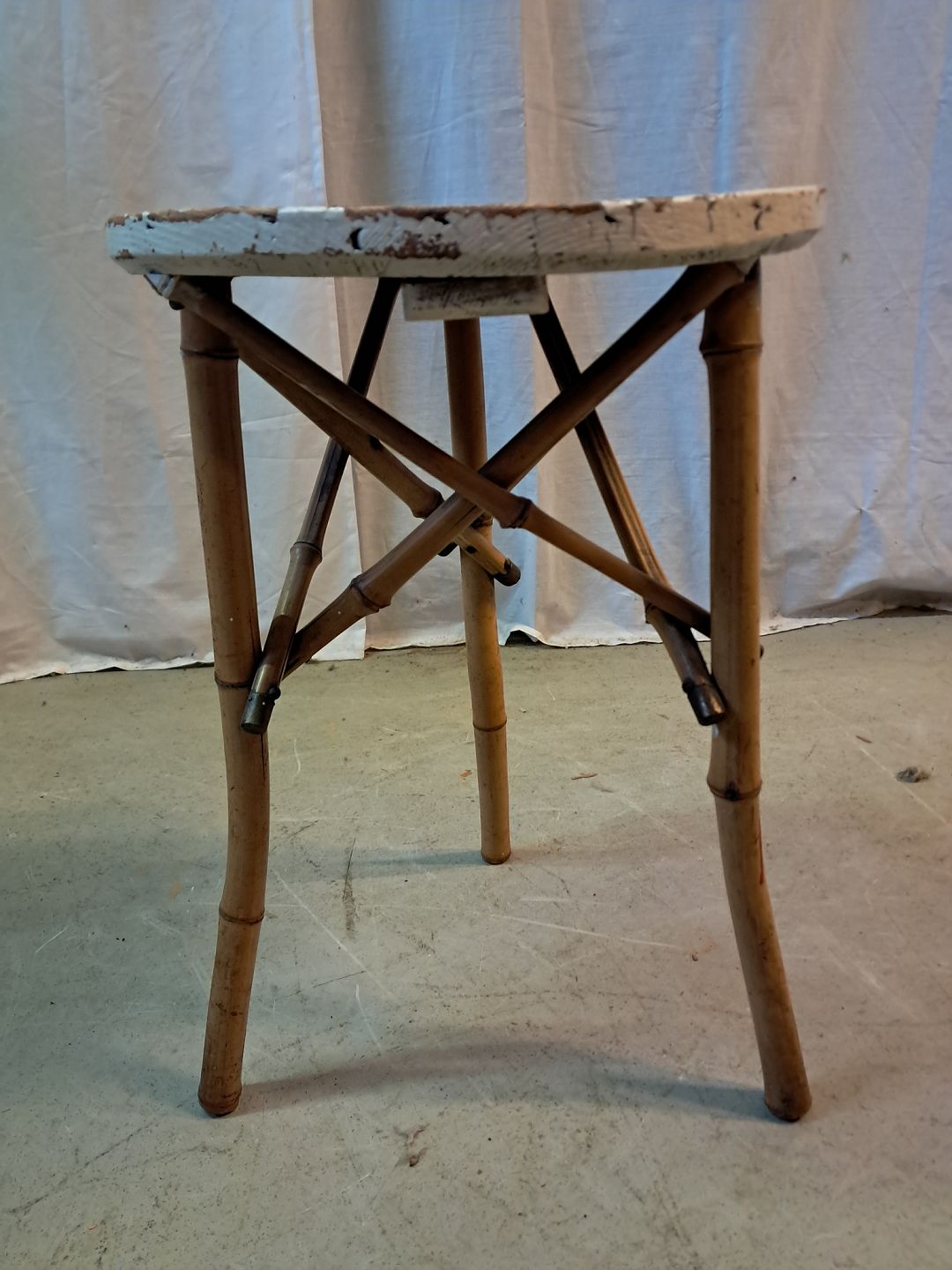 Bambusbord med malet plade, fra 1930erne.