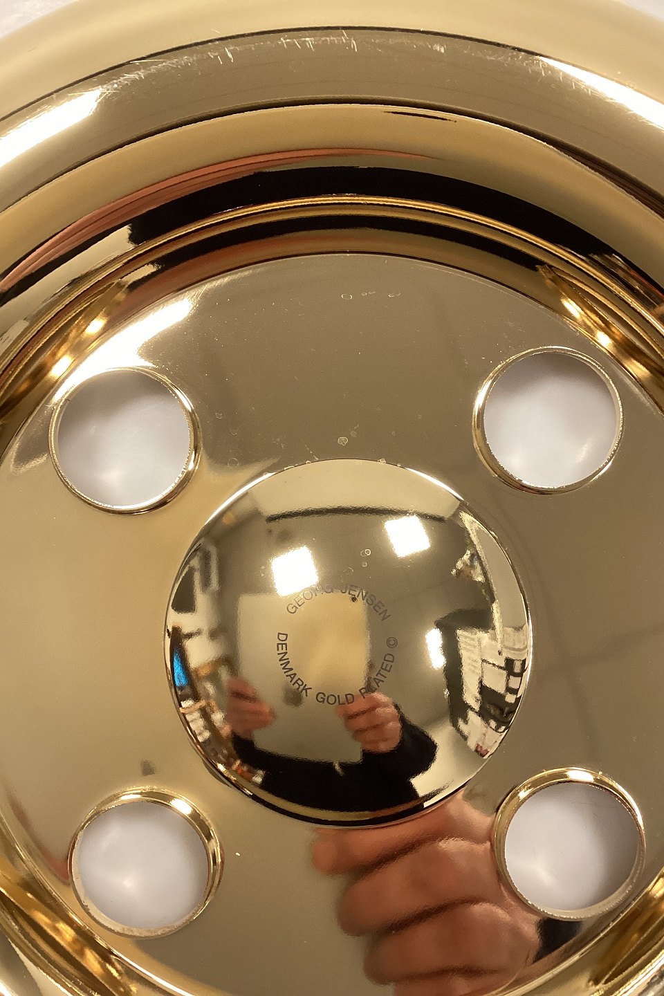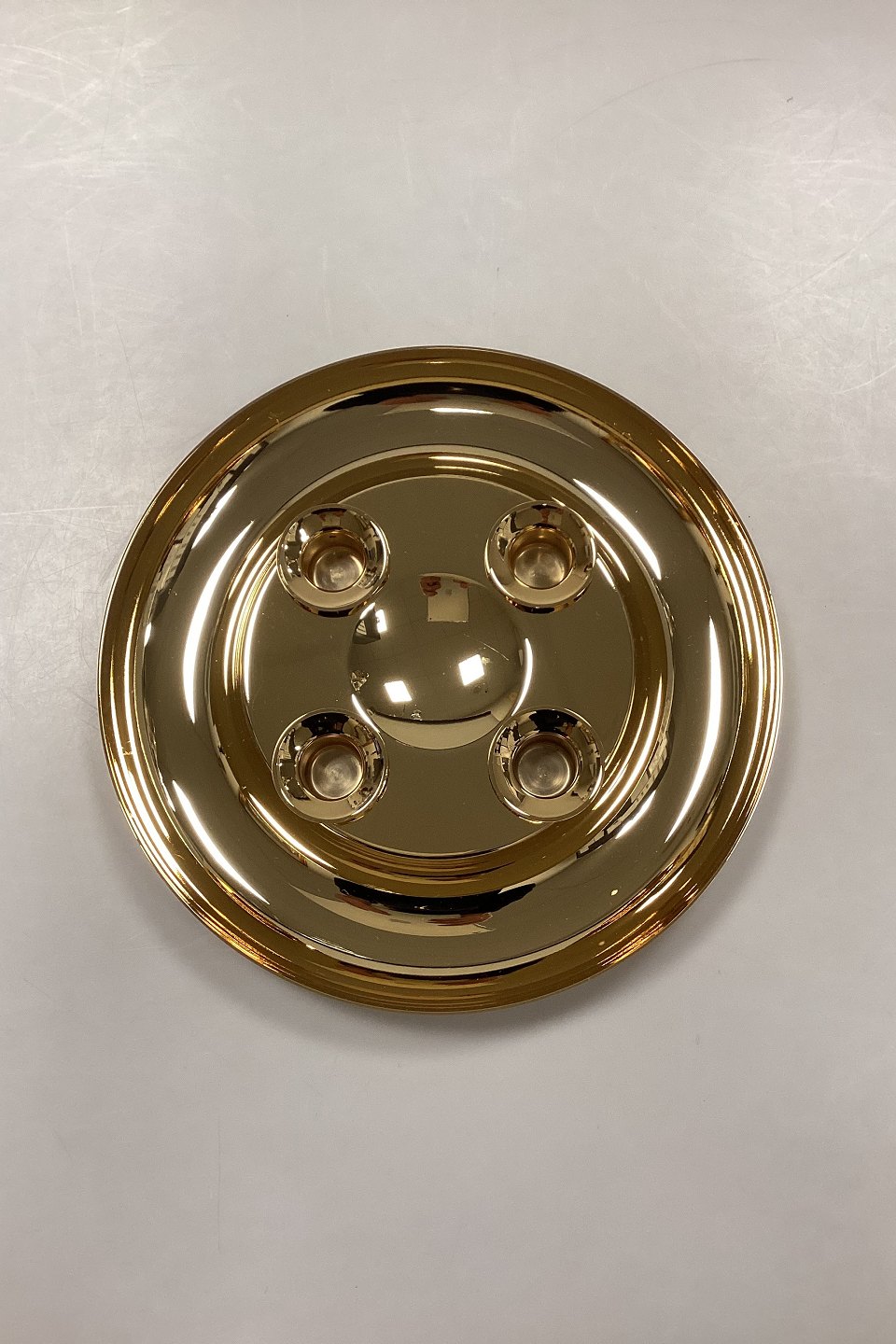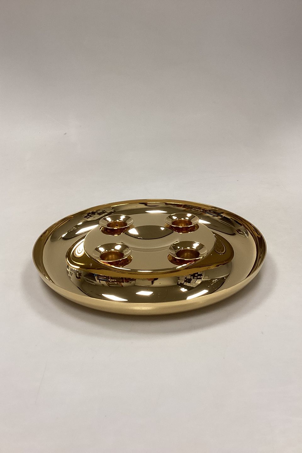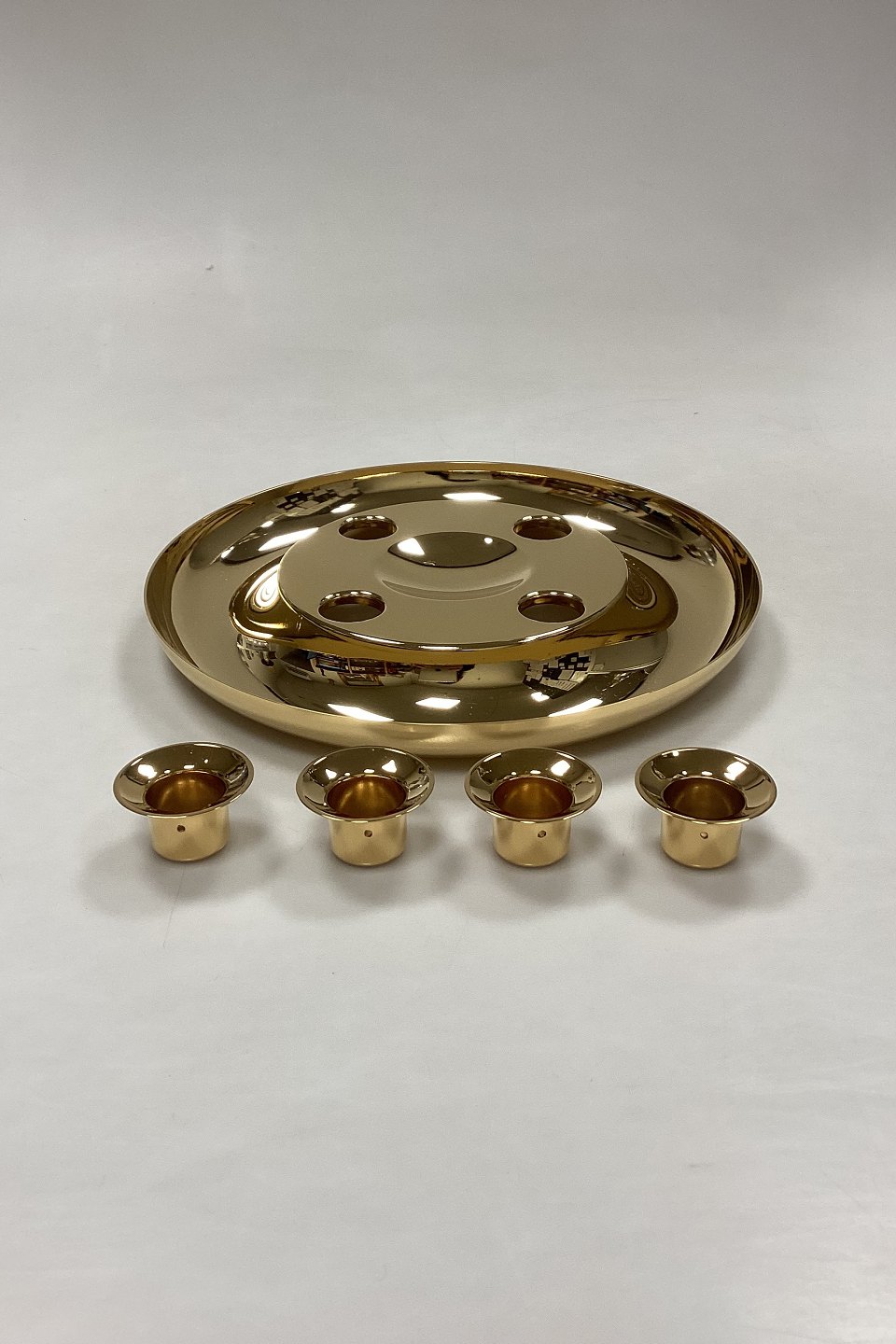 Georg Jensen Adventsstage. Krans i forgyldt messing med aftagelige lyseholdere. Design: Andreas Mikkelsen.
