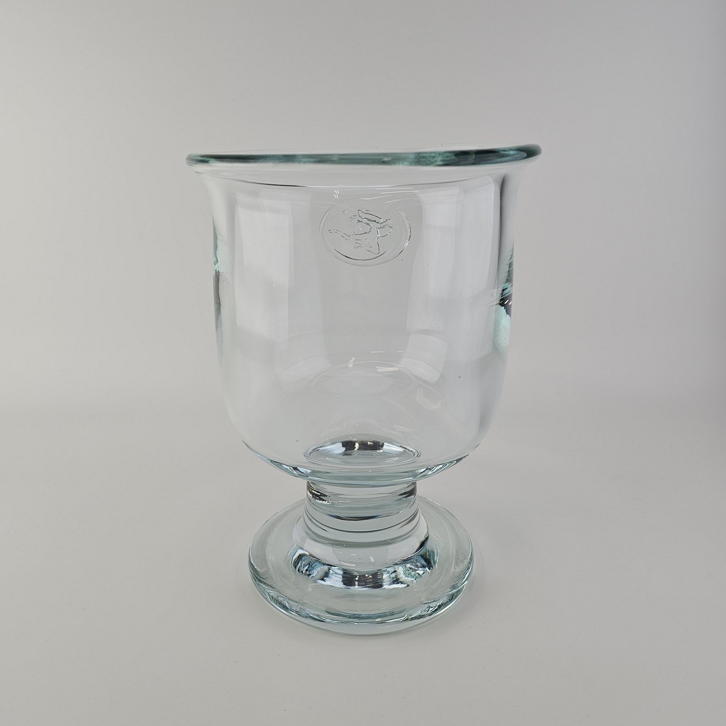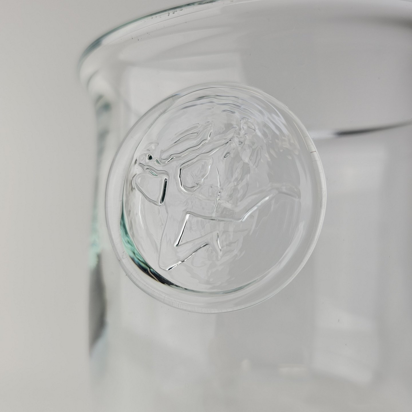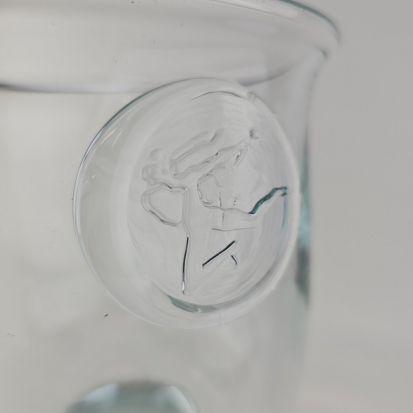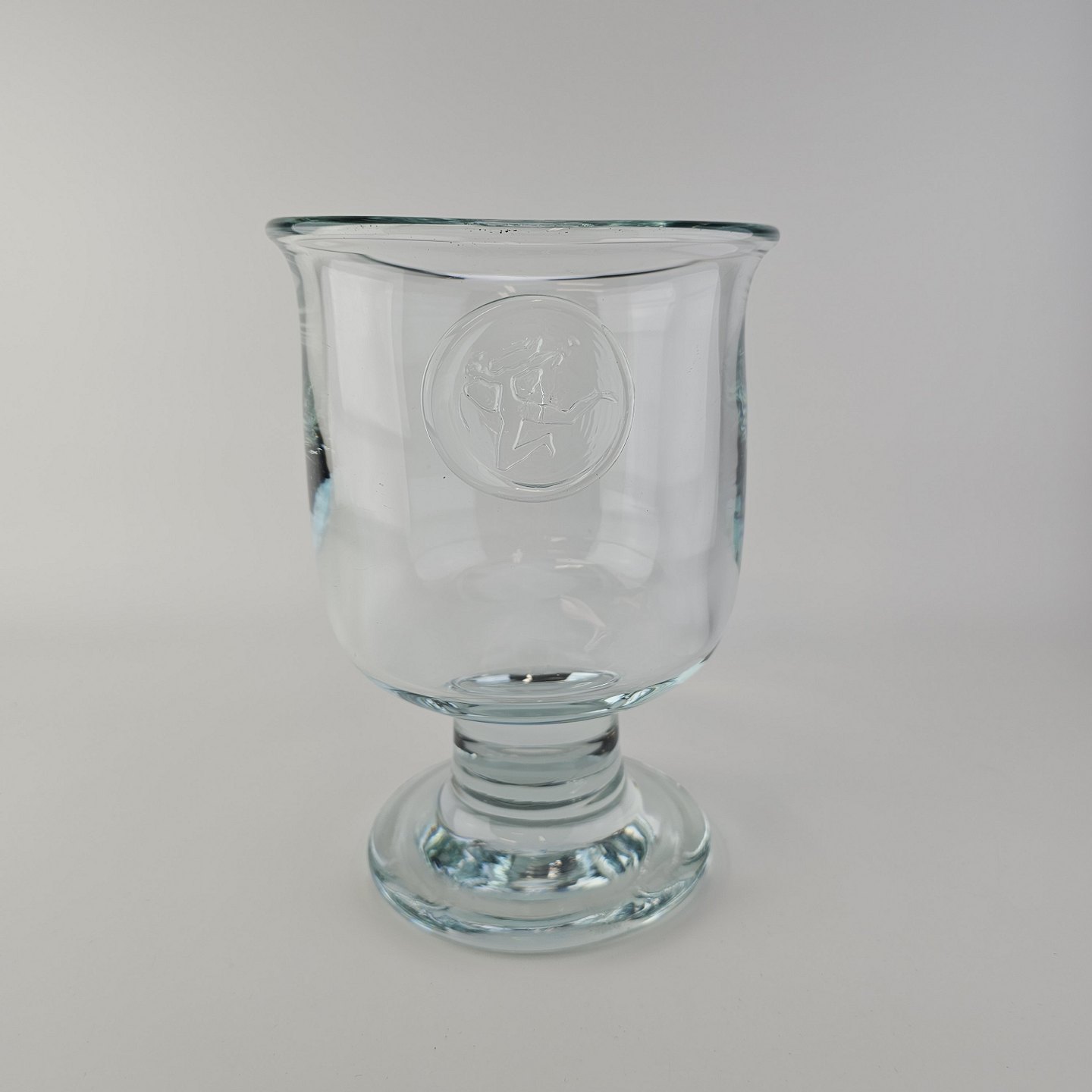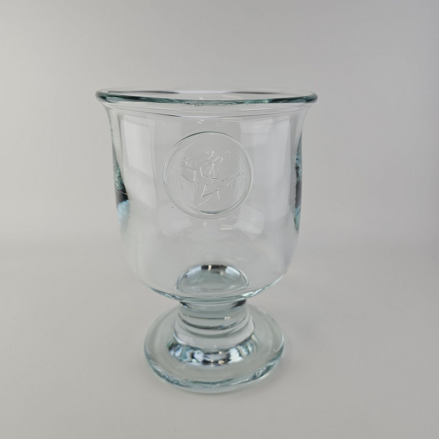 Pokal i glas produceret i forbindelse med Privatbankens 125 års jubilæum. Pokalen er prydet med et segl på, der forestiller en Hermesfigur og har kalkform