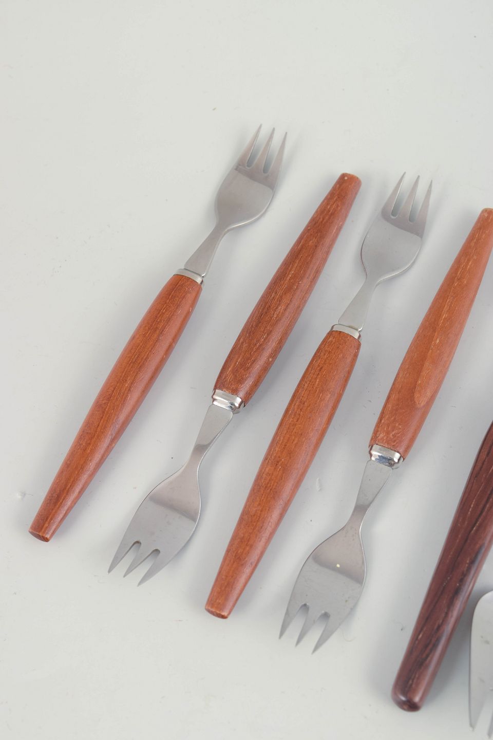Svensk Frokostbestik til 4 Personer, teak og rustfrit stål.