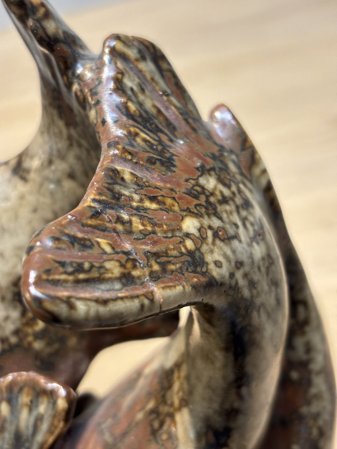 Saxbo figur med fisk Hugo Lisbjerg H 24,5. En finne rep.