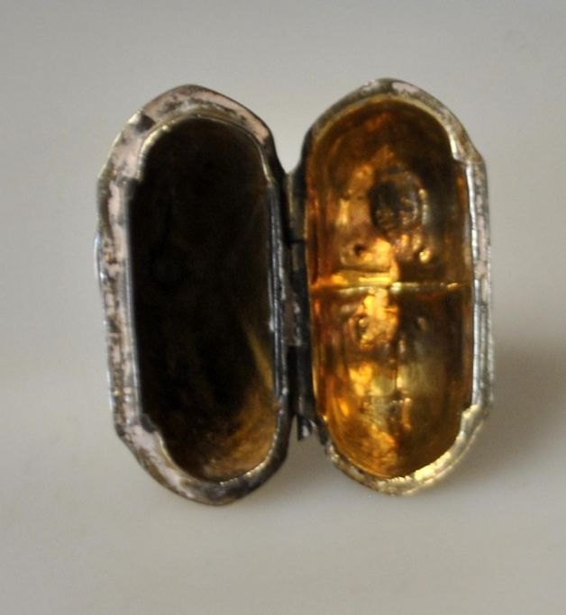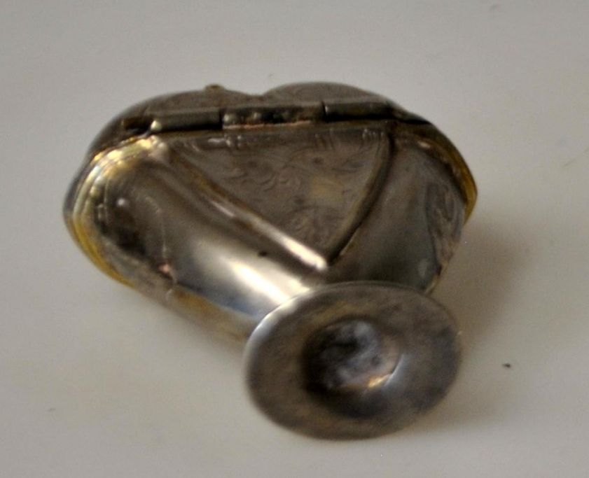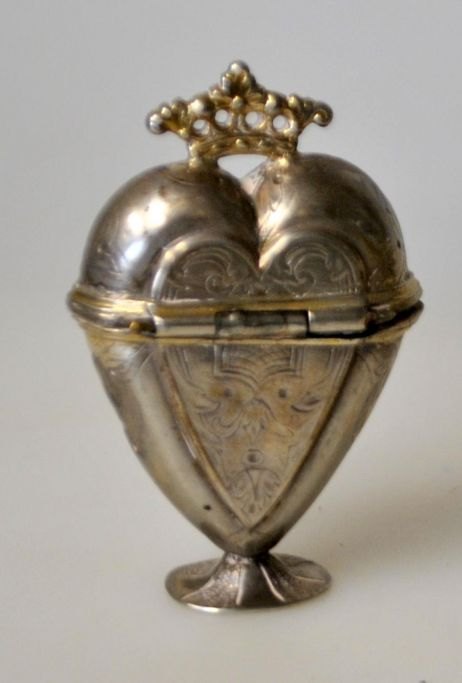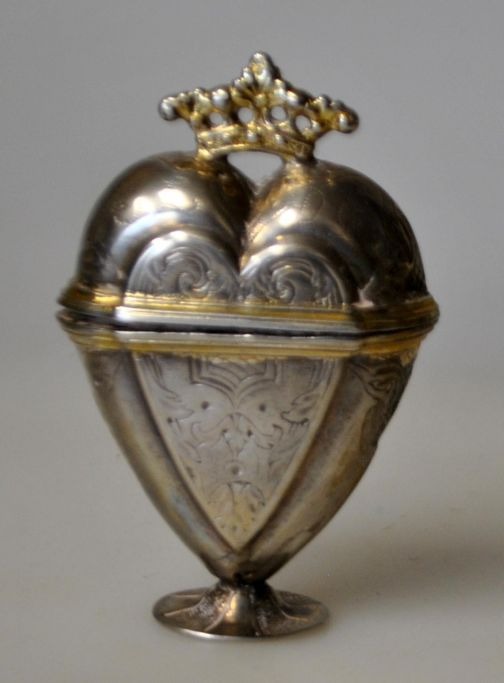 David Reich (1726 - 1782) København, Danmark: Hjerteformet hovedandæg med krone. På standfod. Indvendig lueforgyldt. Stemplet indvendig i låget. Med udvendige graveringer. H.: 65, cm.