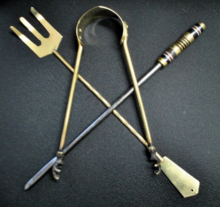 Pejsesæt i messing, England, 19. årh. I 3 dele. L: 40 cm.