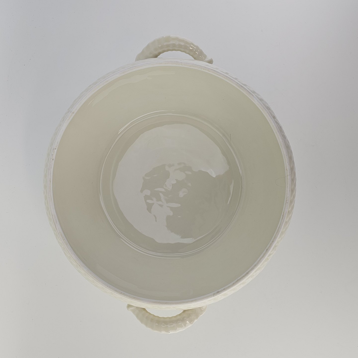 Elegance er cremefarvet glaseret porcelæn med skæl mønster