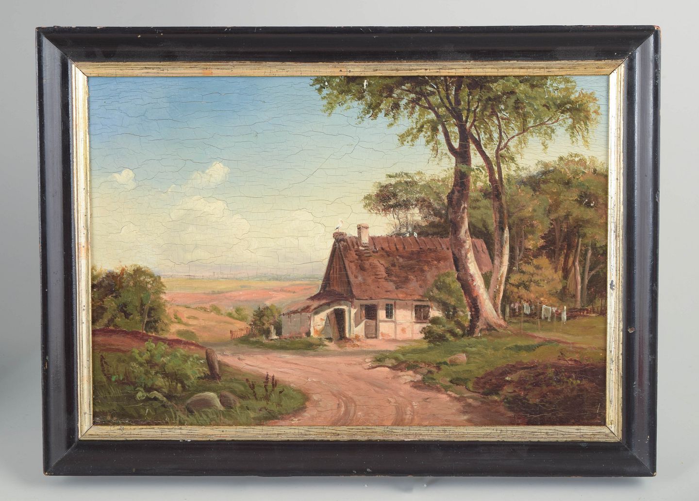 Den danske guldalder var præget af en poetisk og naturtro skildring af landskab og hverdagsliv, ofte med små gårde, veje og trægrupper som bærende motiver. Kunstnere fra perioden arbejdede med et roligt, harmonisk billedsprog og en afbalanceret farveholdning, hvor lys og atmosfære spillede en central rolle. Olie på træ eller mahogni blev hyppigt anvendt til mindre formater med høj detaljerigdom.