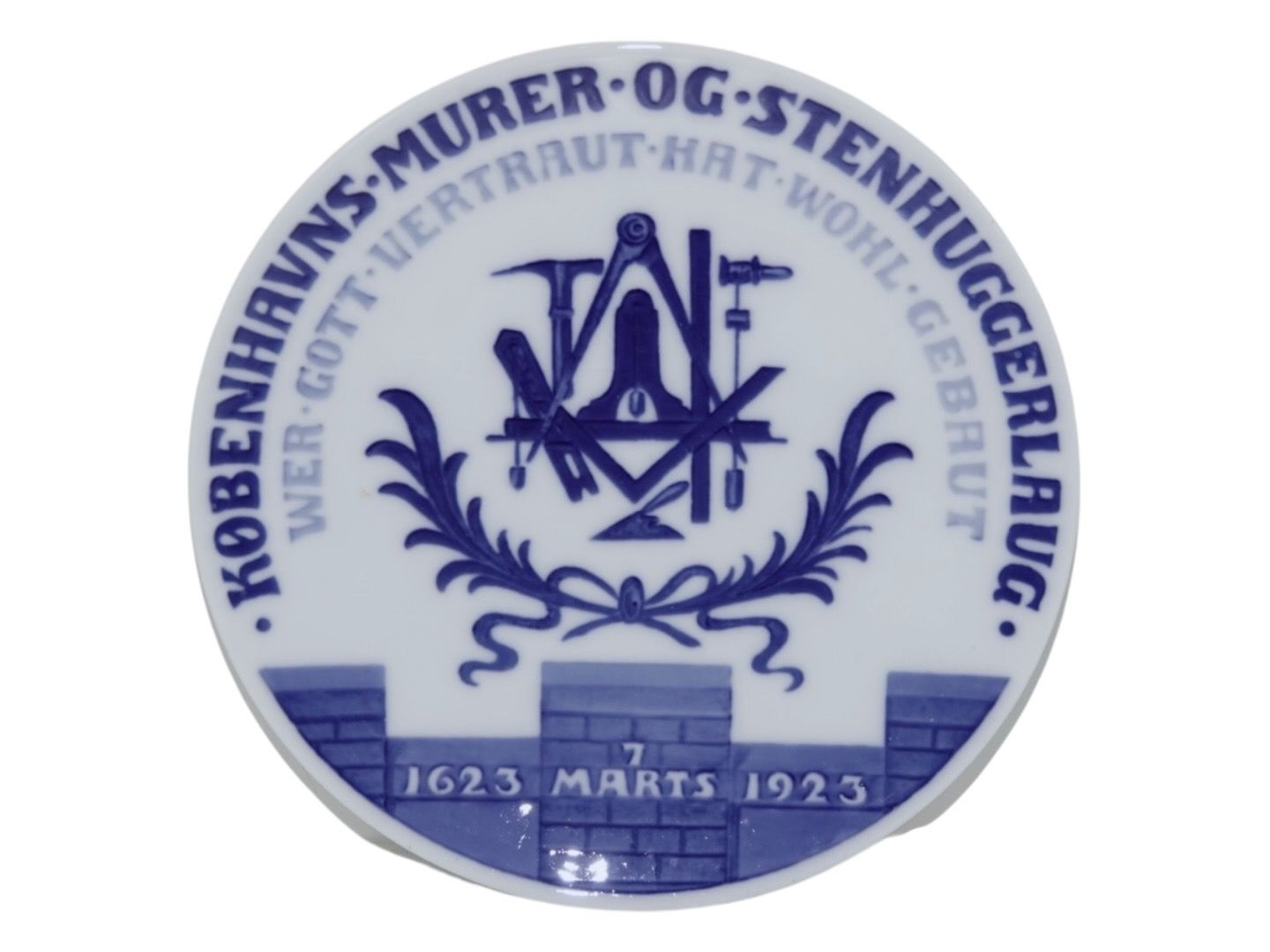 Royal Copenhagen Mindeplatte fra 1923, Københavns Murer og Stenhuggerlaug - 7. Marts 1623-1923.