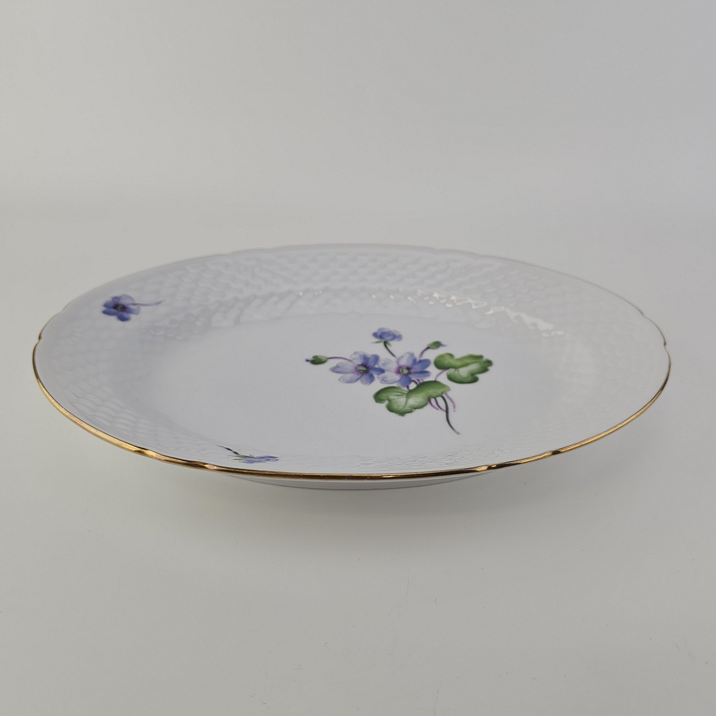 Antonius er af hvidt porcelæn med skælform dekoreret med håndmalede blå anemoner og guldkant. Også kendt under navnet Blå Anemone.