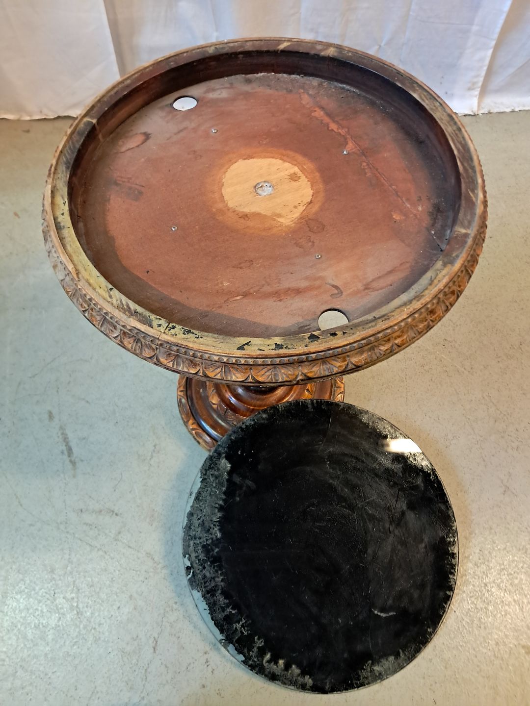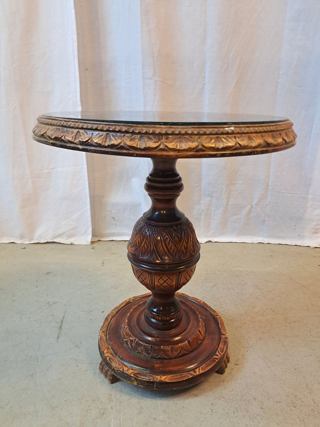 Lampebord i birketræ med glasplade, fra 1930erne.