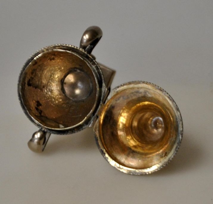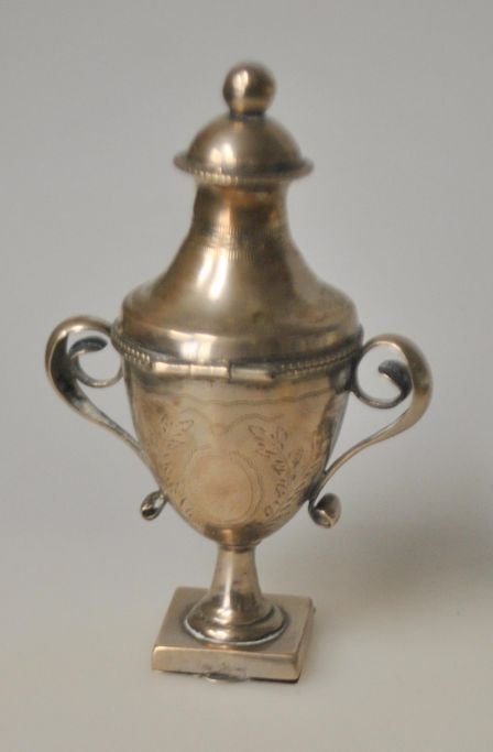 Mathias Lind (1831 - 1920) Ringkøbing, Danmark: Hovedvandsæg i sølv. Senempire. Vaseform. 1871. Indvendig lueforgyldt. Stemplet i balsamgemmet. H.: 10,5 cm. Med indgravering: B. K. Andersen Holck 1871.