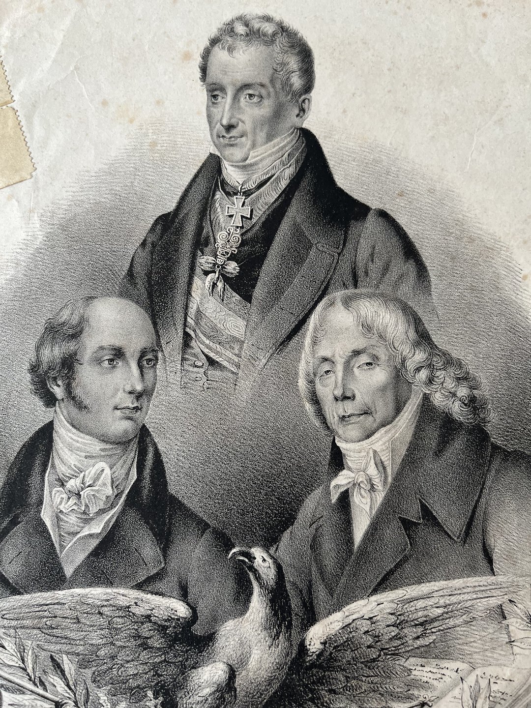 Litografi 1840 - 3 europæiske politiker portrætter i kartouche.