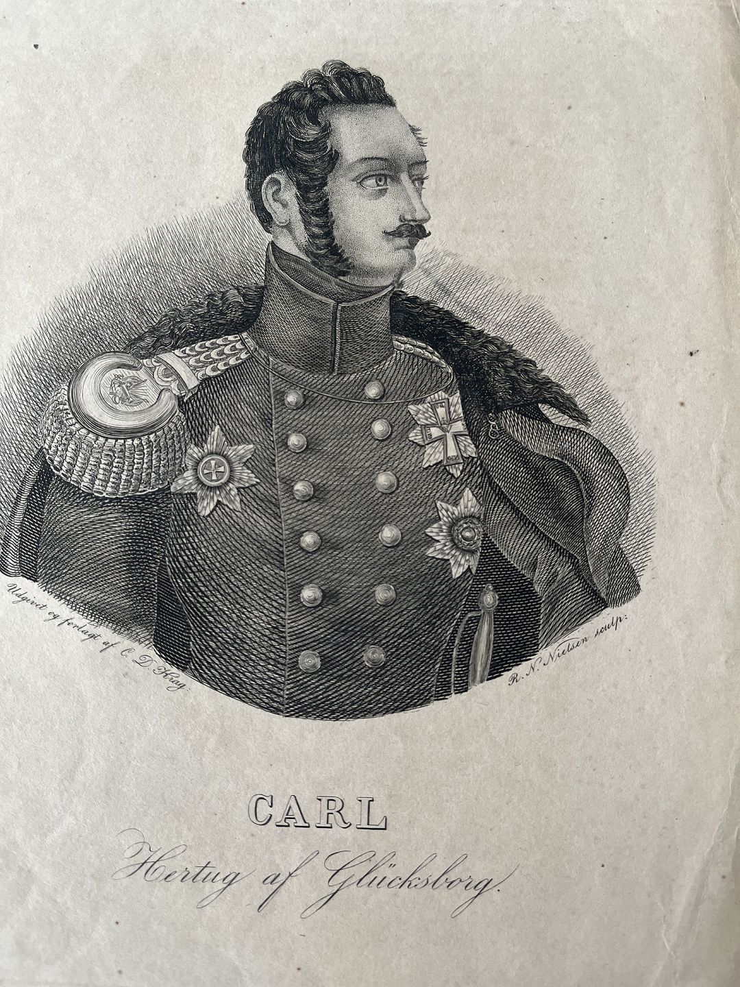 Litografi af Rasmus Nicolai Nielsen - Portræt af Hertug Carl af Slesvig-Holsten-Sønderborg-Glücksborg.