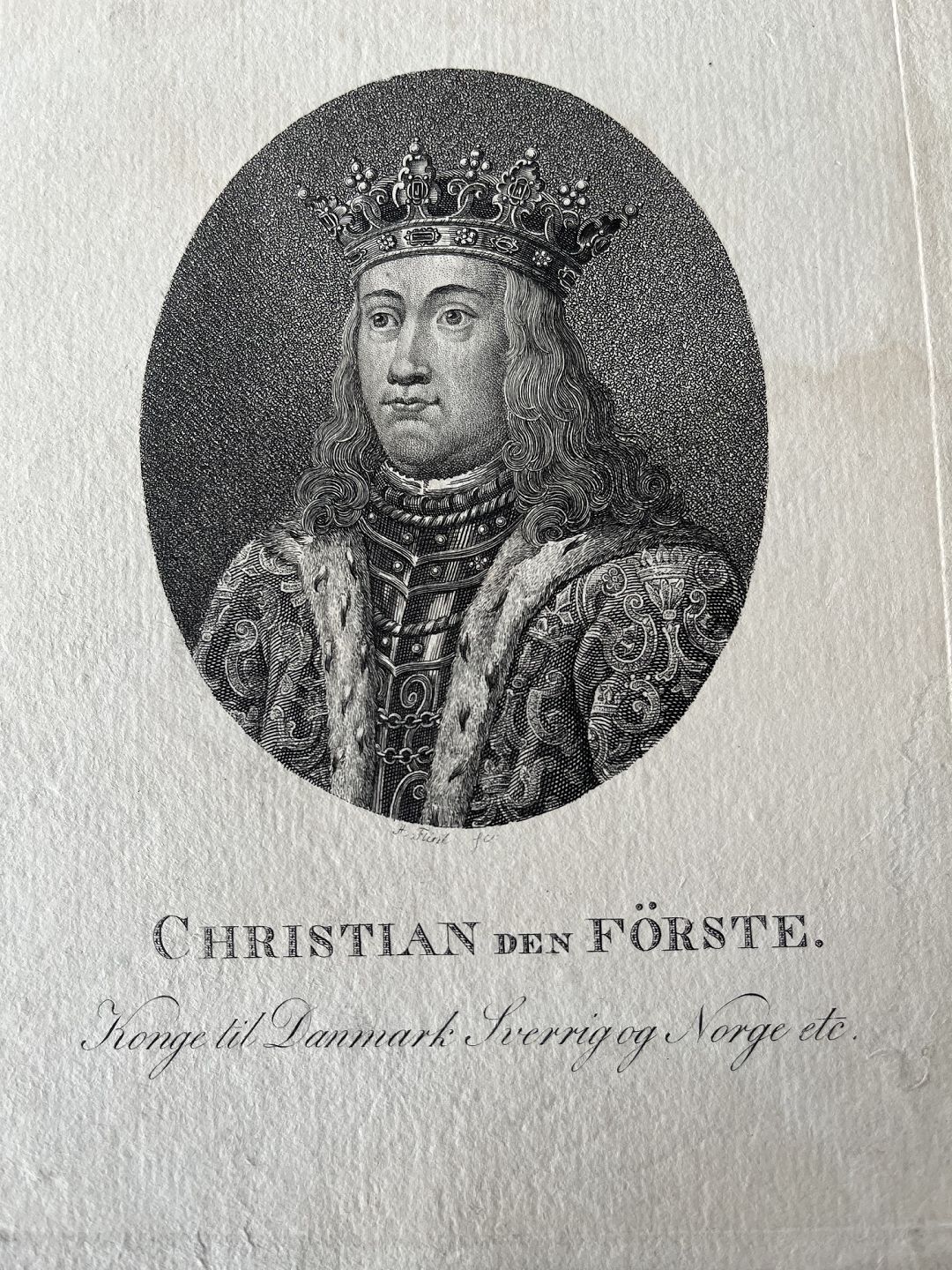 Kobberstik af Andreas Flint - Portræt af HM Kong Christian I af Danmark, Norge og Sverige.