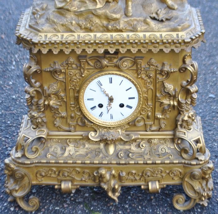 Fransk kaminur i lueforgyldt bronze, 1810 - 1820. Charles X.