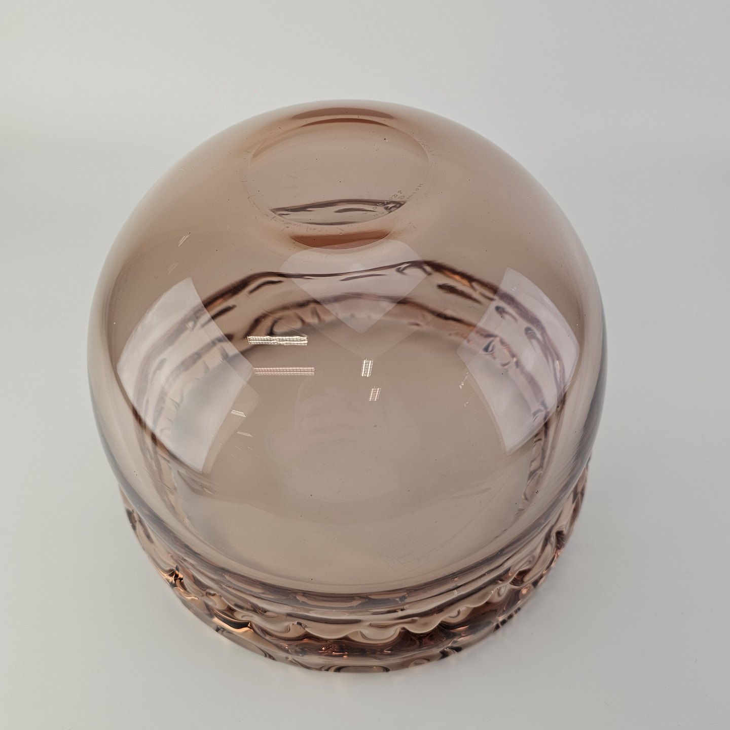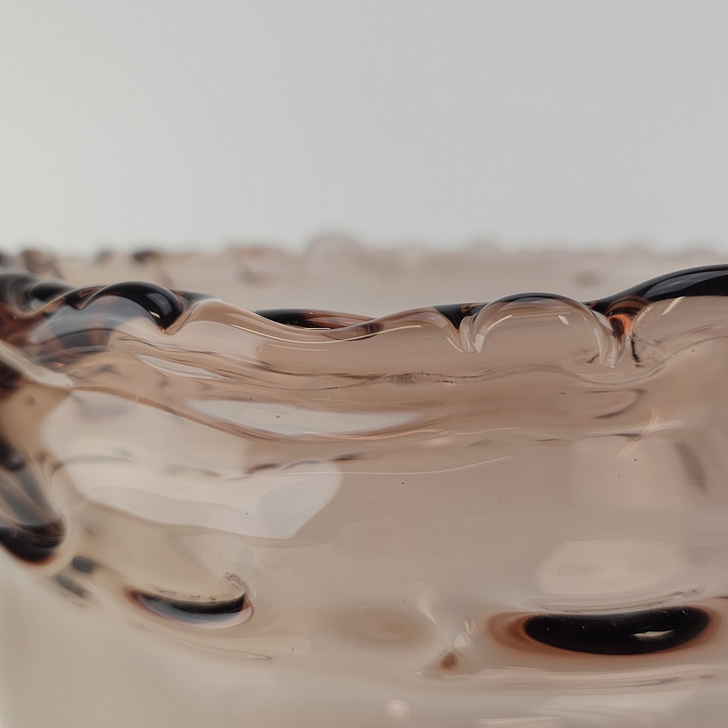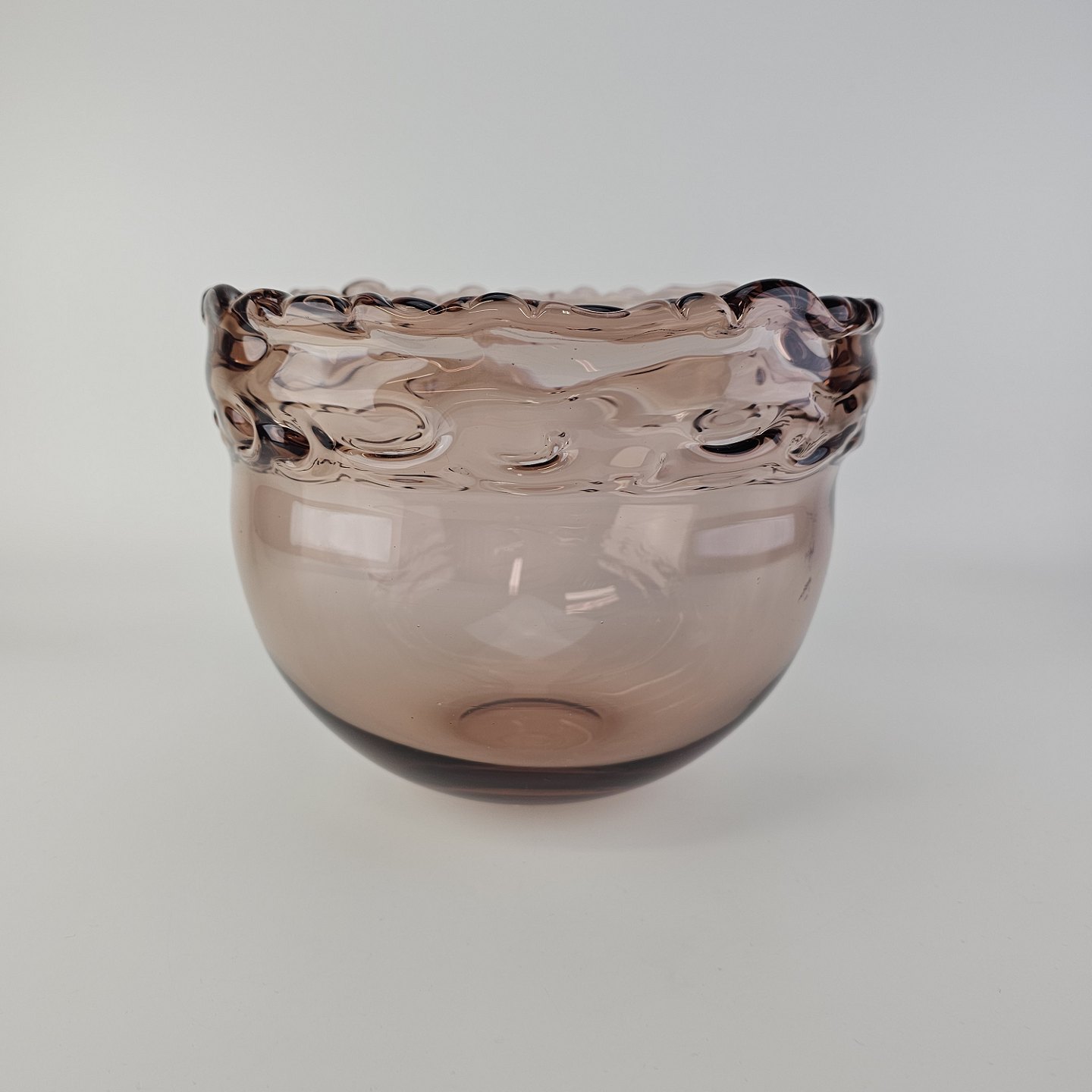 Skål i rosafarvet glas med bølget kant fra serien Rosamund