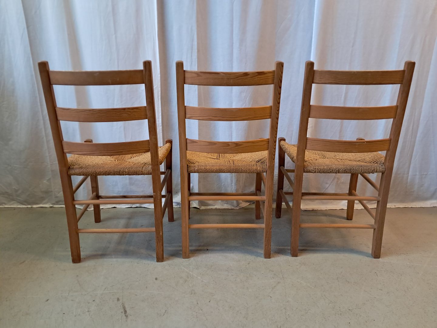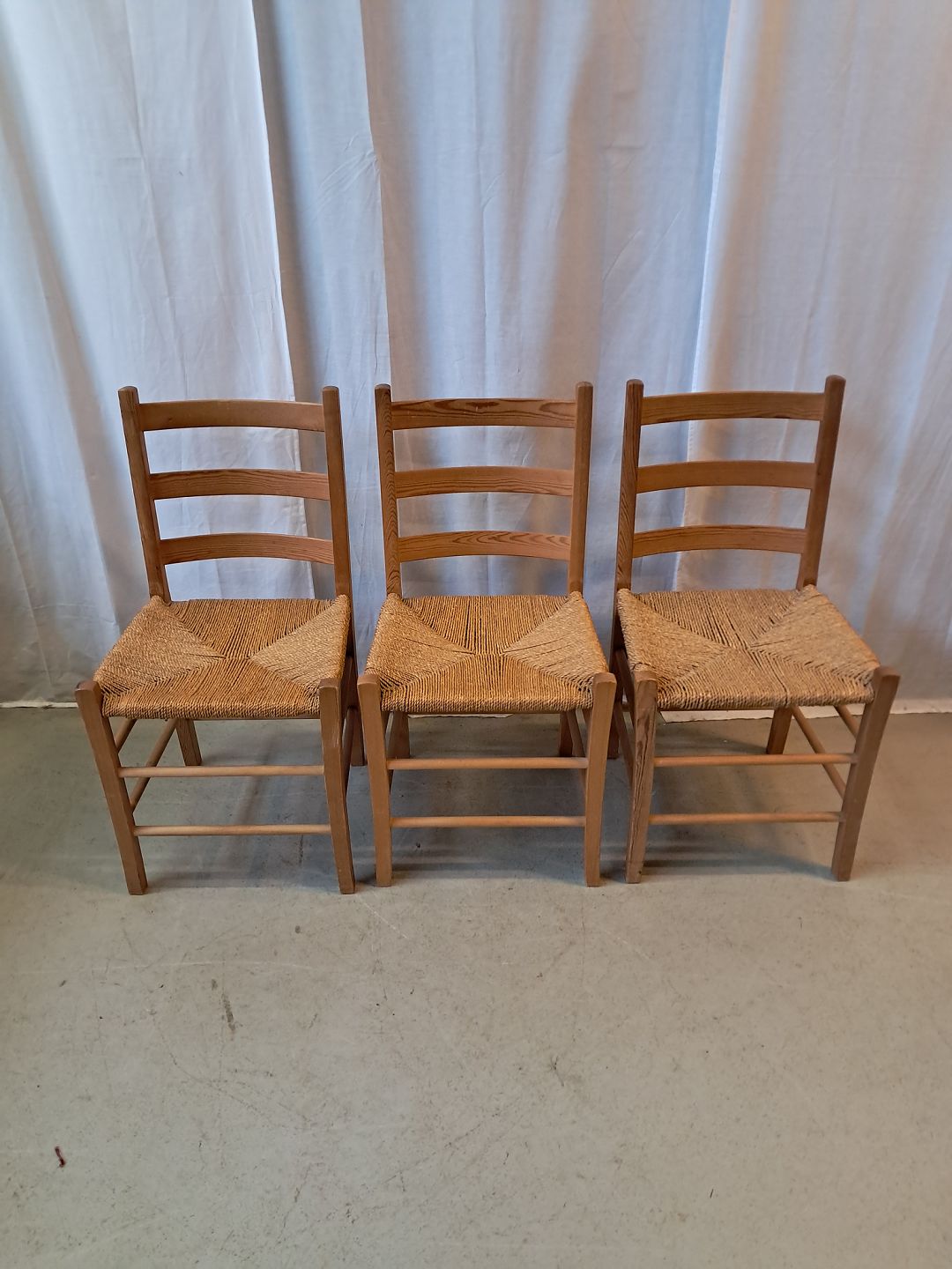 3 Stole i massivt fyrretræ, fra 1980erne.