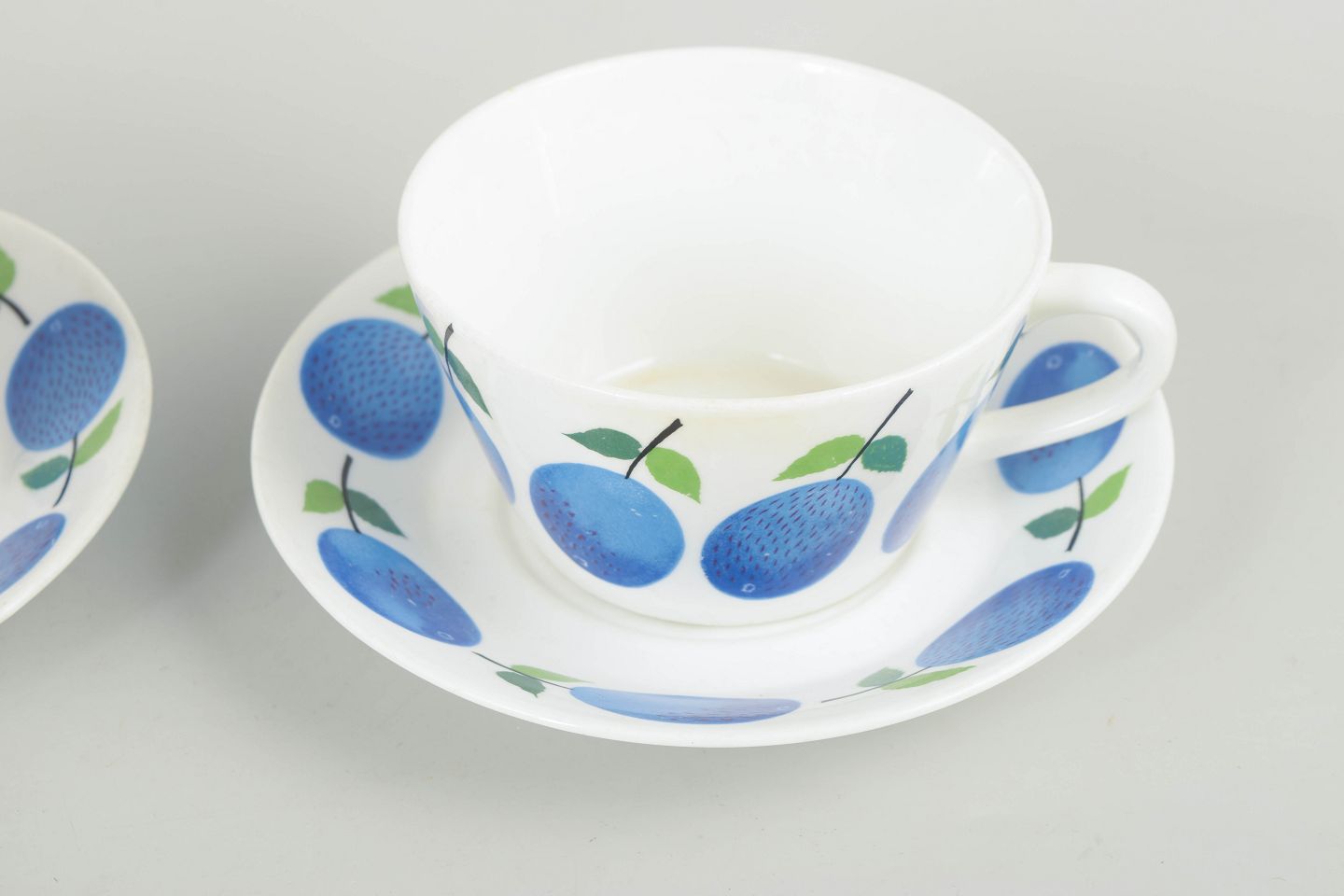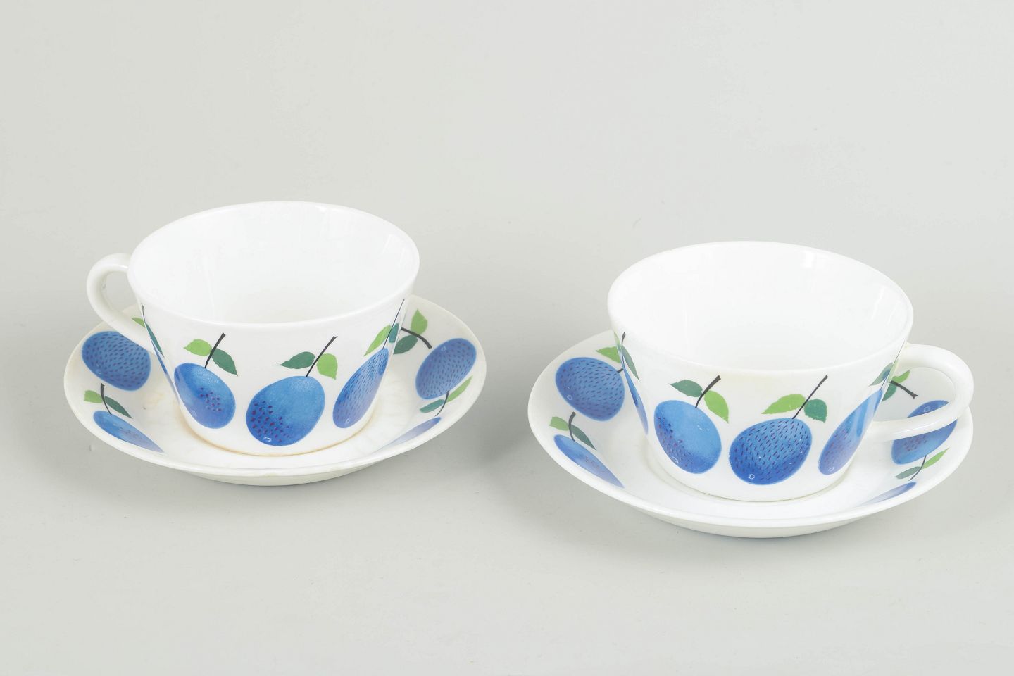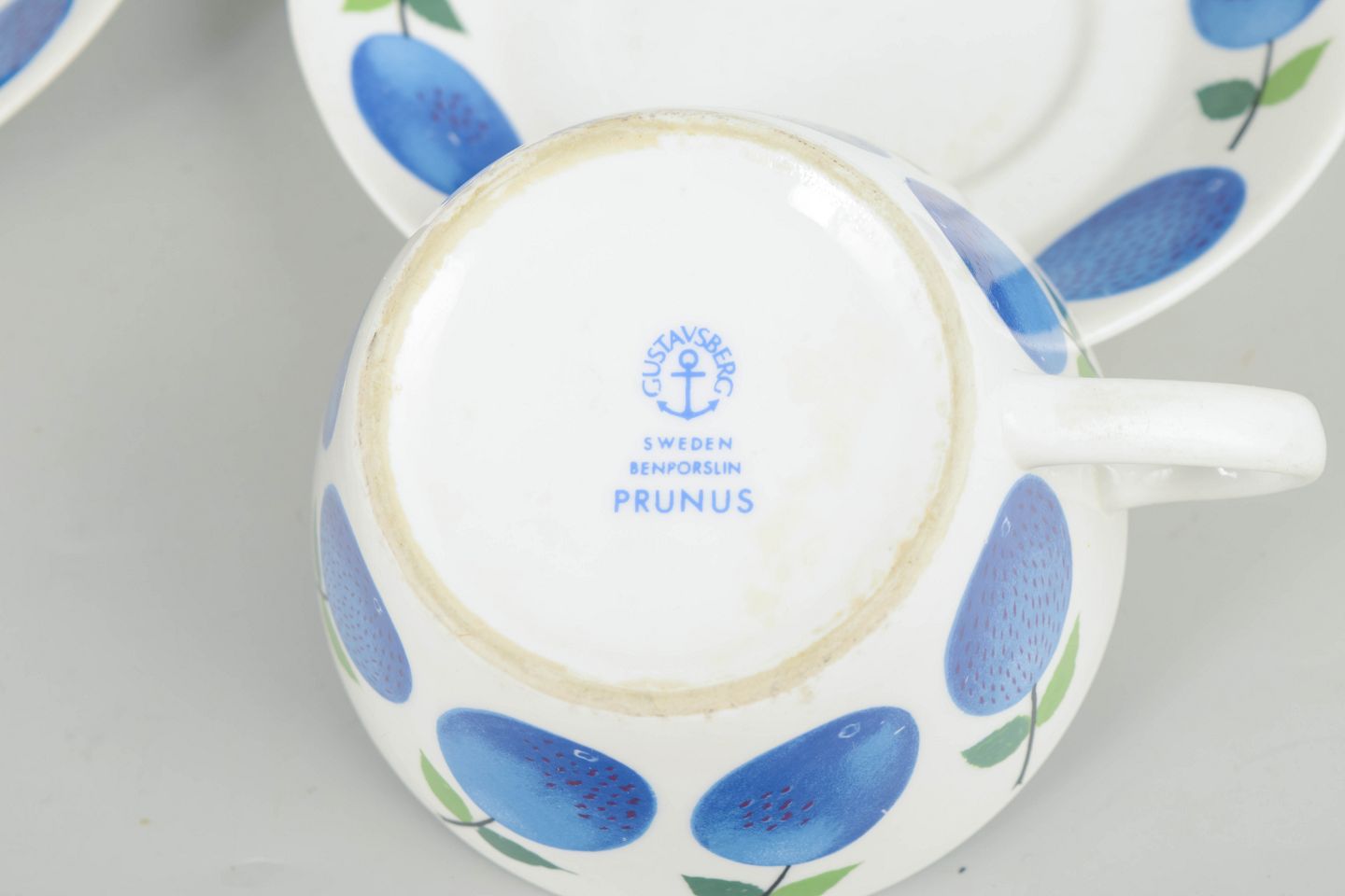 Stig Lindberg for Gustavsberg, to "Prunus" tekopper med matchende underkopper.