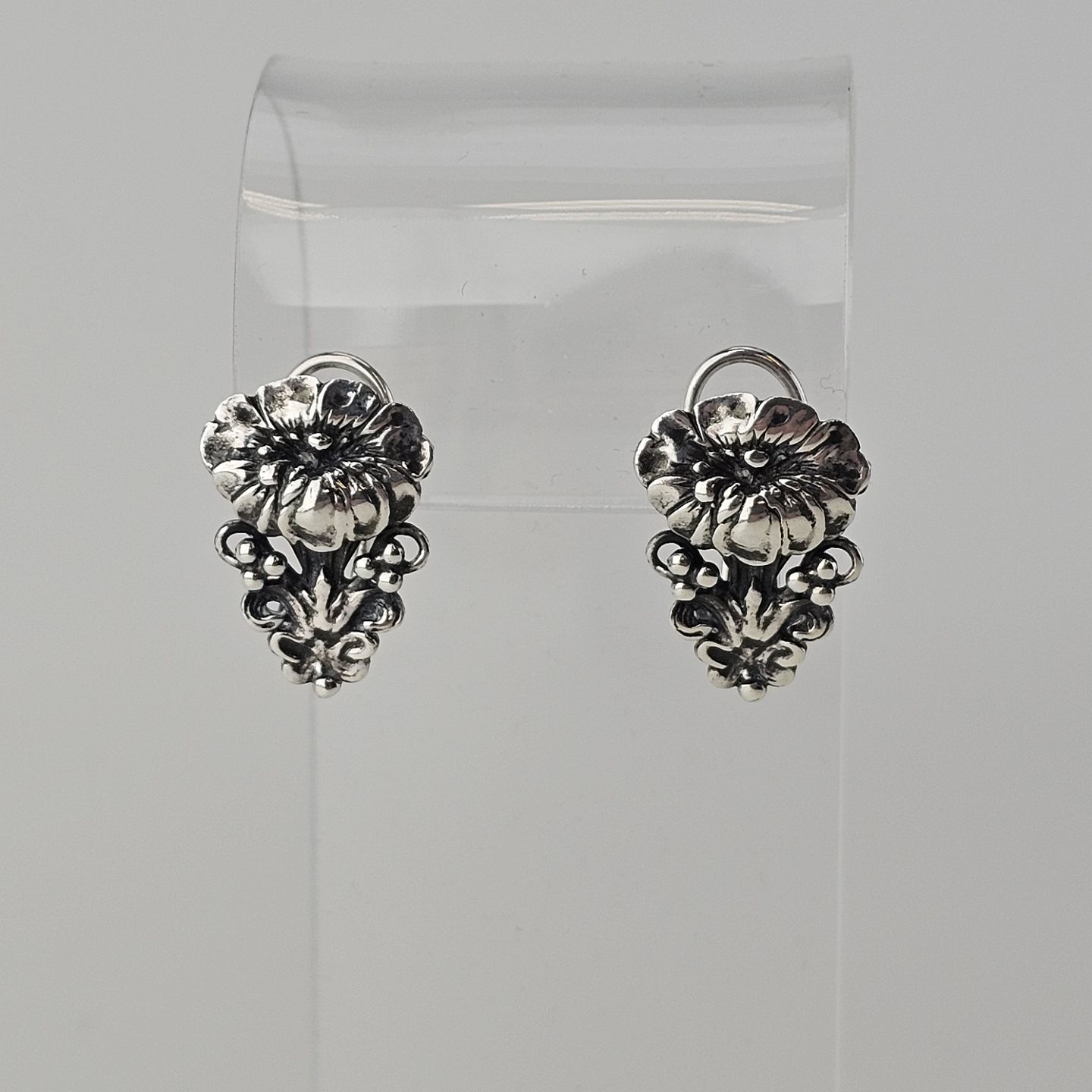 Ørestikker i sterling sølv med blomstermotiv