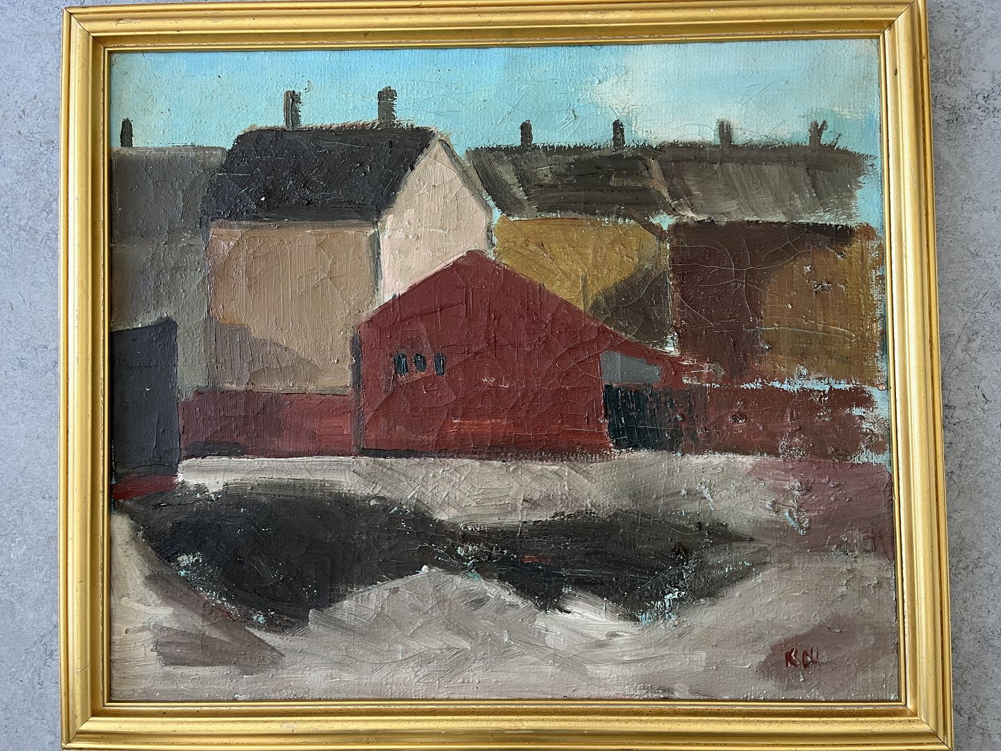 Maleri af Kurt Nedergaard - Huse i tusmørke 1962.