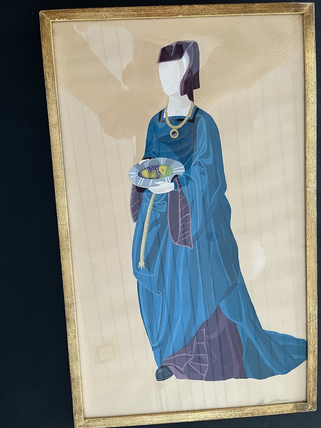 Gouache af Elise Feldvoss - Kvinde i historisk dragt.