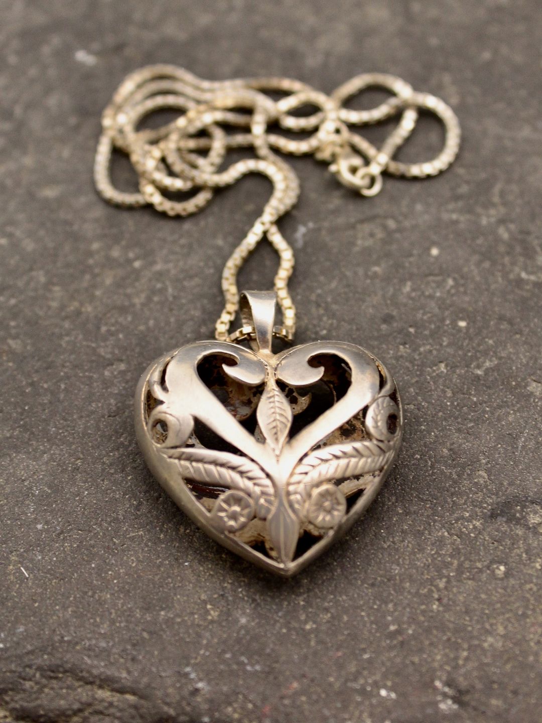 Sterling sølv hjerte vedhæng 3,2 x 3,6 cm. og sterling kæde emne nr. 631866