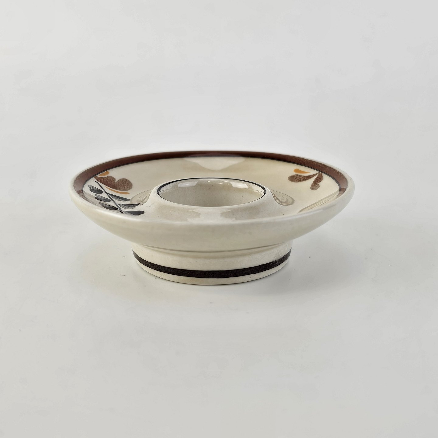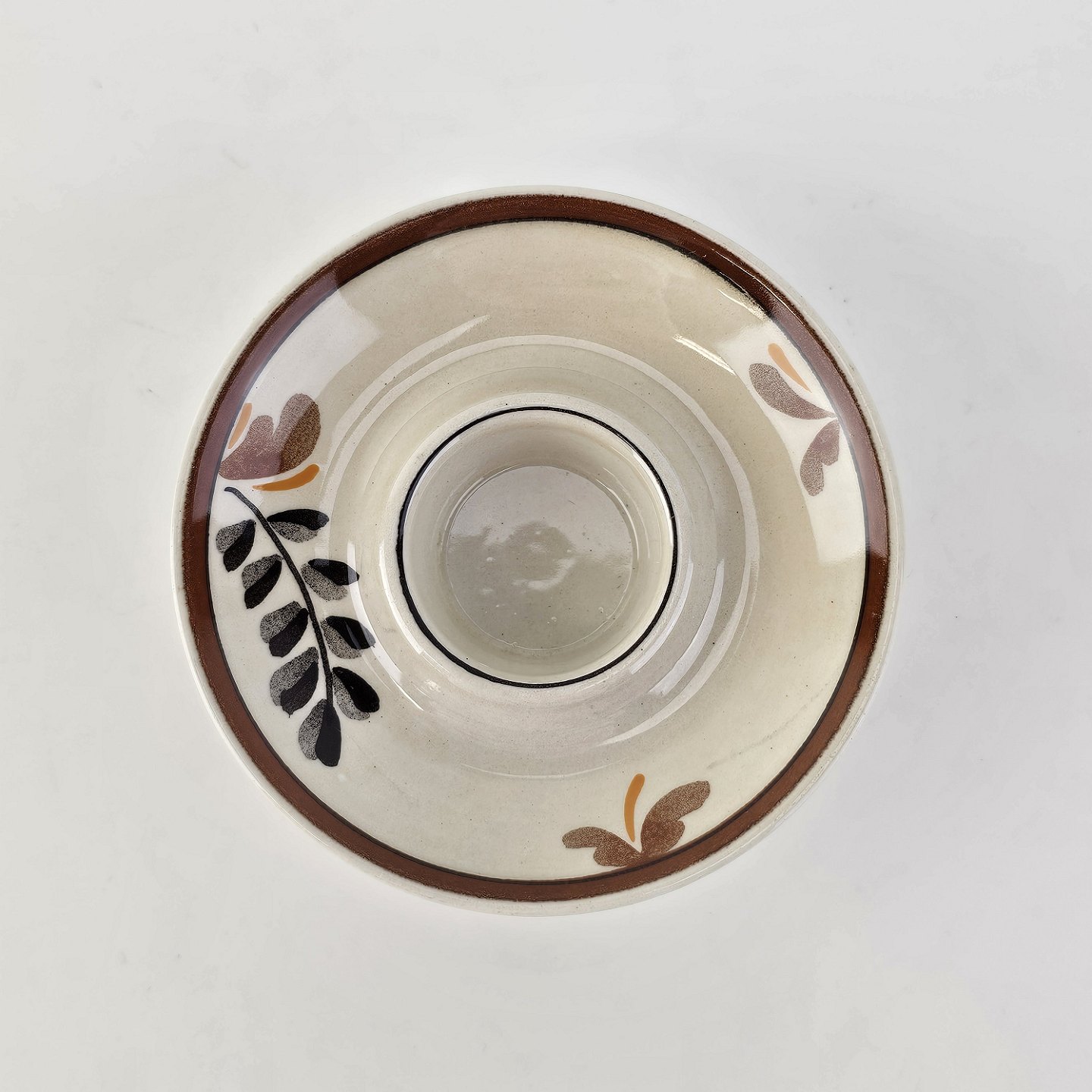 Knud er cremefarvet fajance dekoreret med flettet kant og brune og orange blomster. Stellet blev produceret i år 1934-1963.