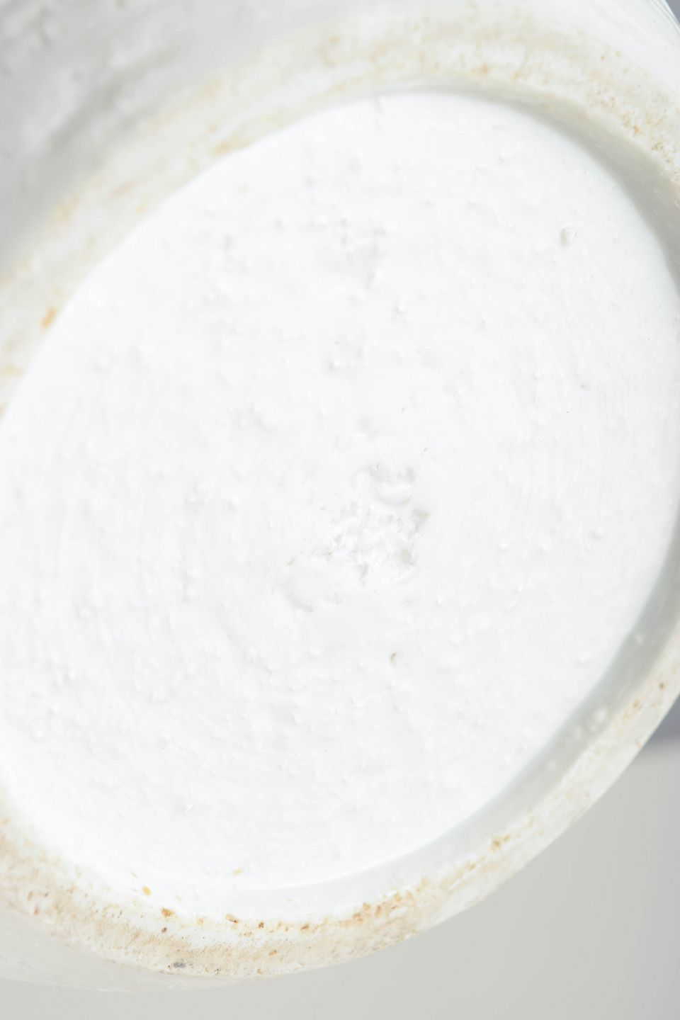 Stor cylindrisk champagnekøler/isspand i hvidglaseret stentøj med let konisk korpus og to markante sidehanke. Overfladen fremstår med diskret struktur og mat hvid glasur. Stemplet i bunden.