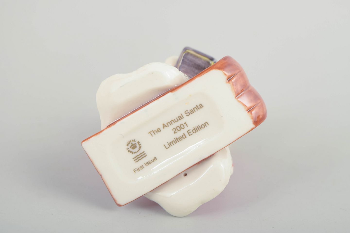 Dekorativ julemand figur i håndmalet porcelæn fra 2001, udført med lanterne og gavesæk. Figuren fremstår detaljeret modelleret med klassisk rød kappe og hvid pelskant. Leveres med original æske. Første sortering.