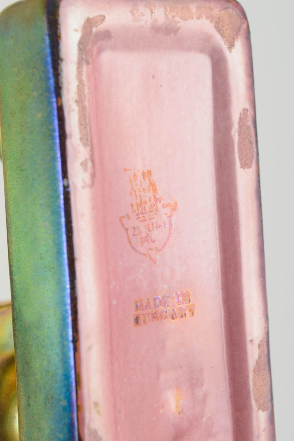 Materiale: Fajance med eosin-glasur.