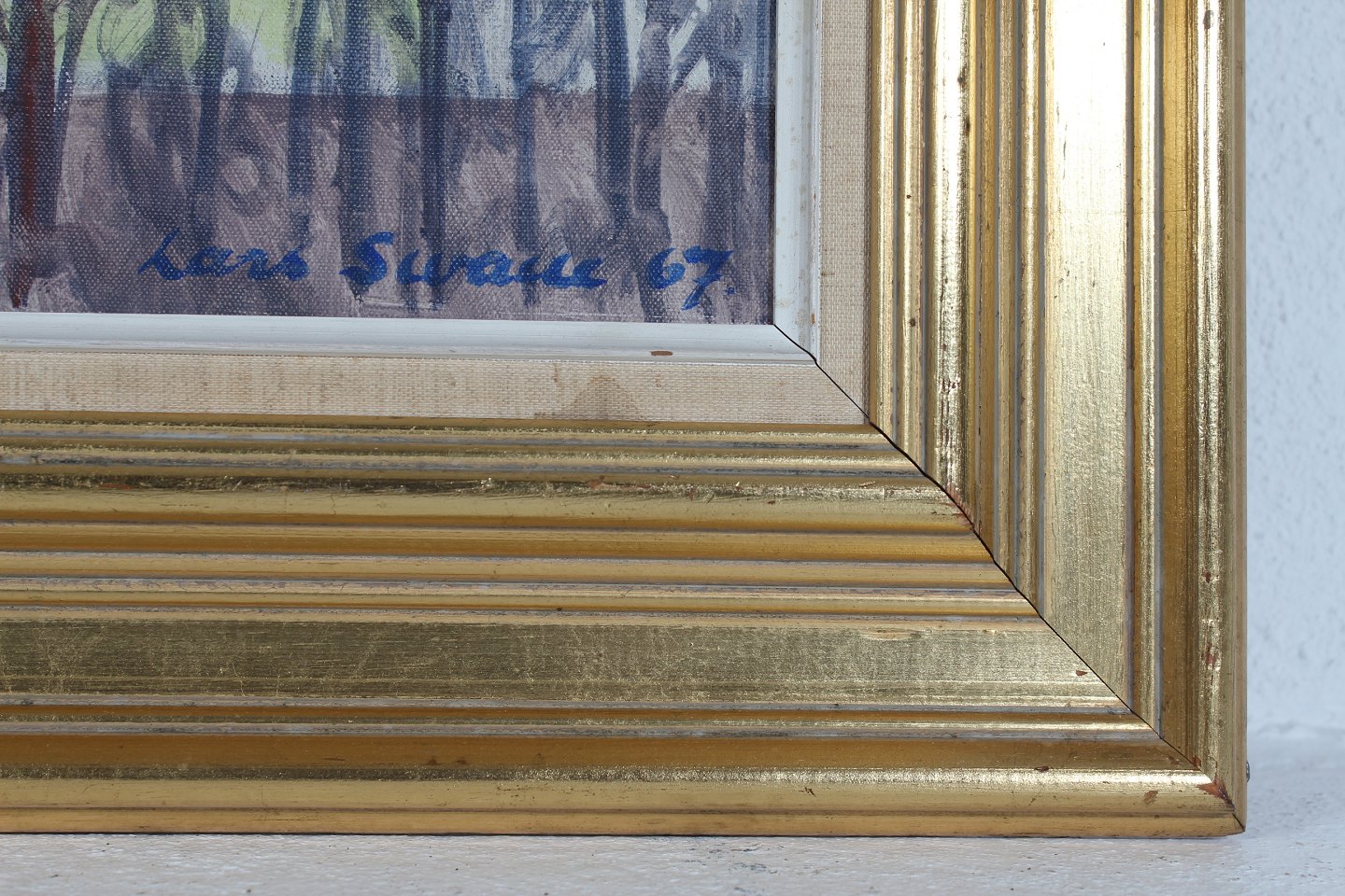 i baggrunden indrammet i forgyldt træramme
