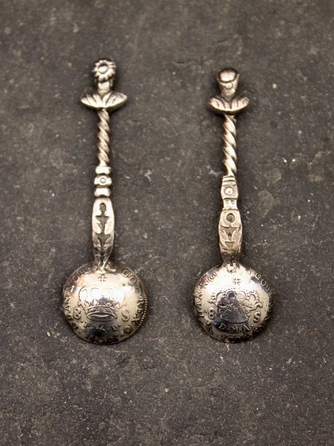 Et par sølv salt skeer L. 6,5 cm. af gamle danske sølv mønter emne nr. 632411